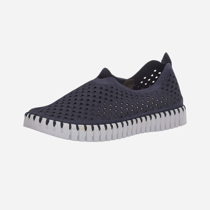 Ilse Jacobsen Tulip 139Â is a lightweight and comfortable slip-on shoe. Prominent features include perforated recycled microfiber uppers, a removable insole and a sturdy and chunky outsole.