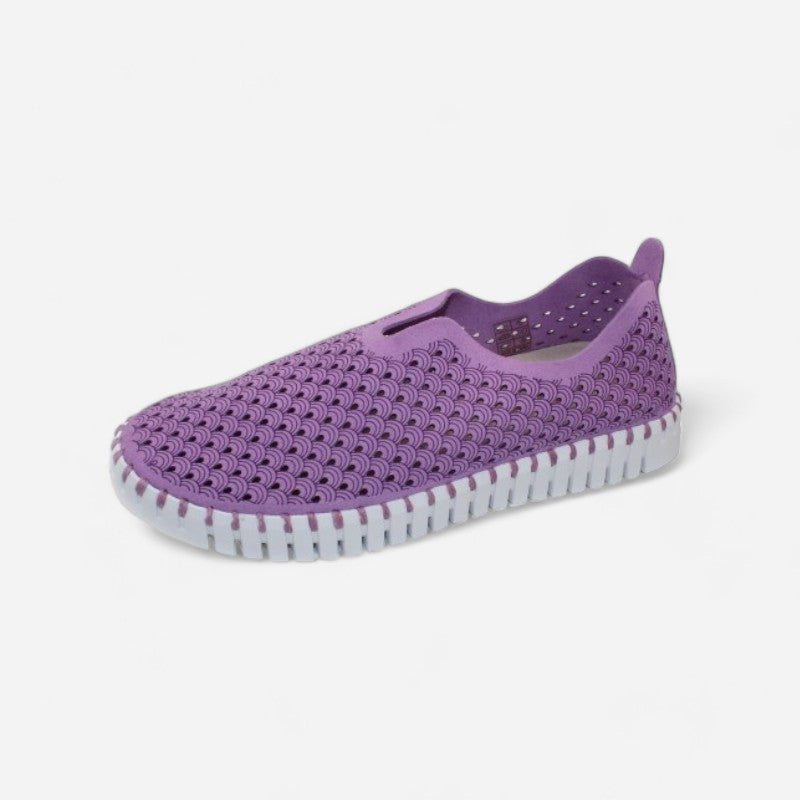 Ilse Jacobsen Tulip 139Â is a lightweight and comfortable slip-on shoe. Prominent features include perforated recycled microfiber uppers, a removable insole and a sturdy and chunky outsole.