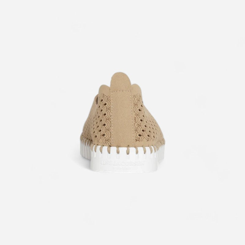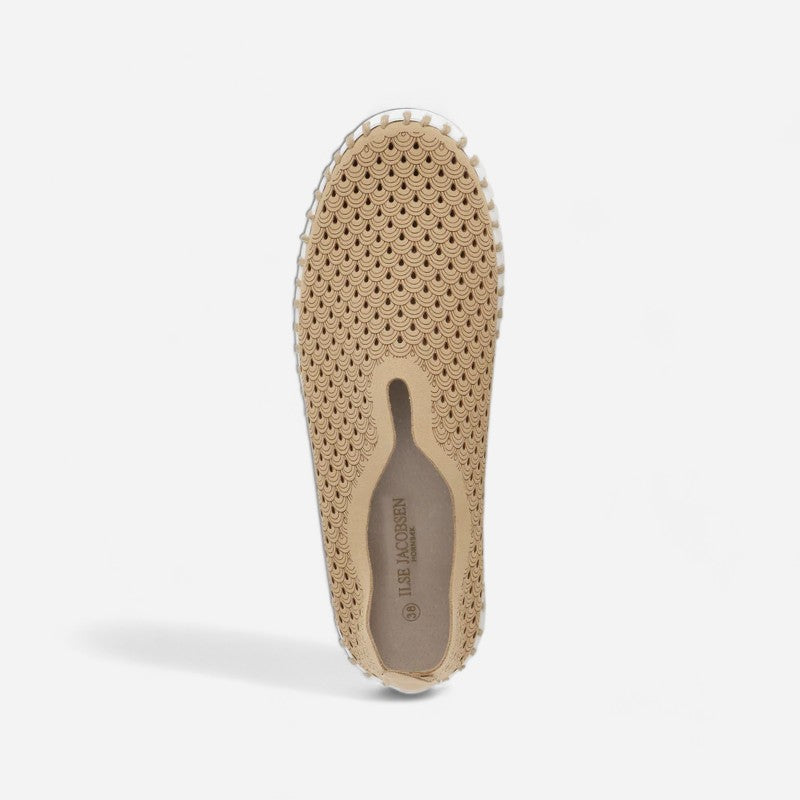 Ilse Jacobsen Tulip 139 is a lightweight and comfortable slip-on shoe. Prominent features include perforated recycled microfiber uppers, a removable insole and a sturdy and chunky outsole.