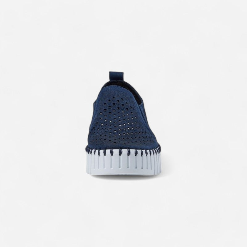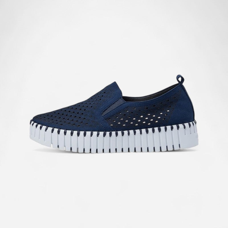 Skip the ordinary| bloom with confidence in the Ilse JacobsenĀ® Tulip 141WOM. These platform sneakers aren't just footwear| they're a blossoming statement of effortless style. The laser-cut designs dance across the breathable upper| letting your feet breathe easy. Lightweight and comfy| they're your perfect all-day companions| conquering cityscapes or seaside strolls with ease. Slip them on in seconds with the handy pull tabs| and feel the luxurious leather footbed cradle your every step.