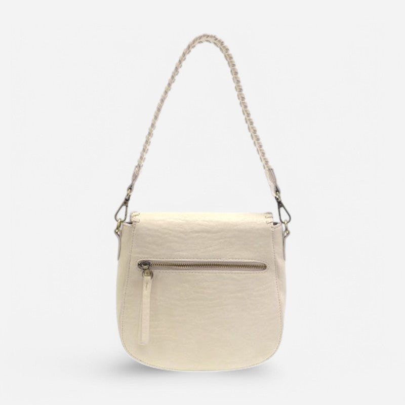 The Annie is a small yet roomy saddle bag that’s just at home in the city or the country with artisanal whipstitching on the flap and removable short shoulder strap. Crafted in rich buffalo grain vegan leather in neutral shades, this bag will give a stylish western energy to your look. It is versatile with the included second longer shoulder strap so you can convert and wear it as a crossbody bag or shoulder bag.