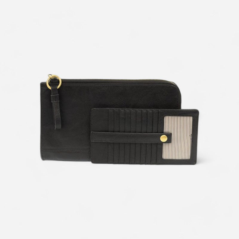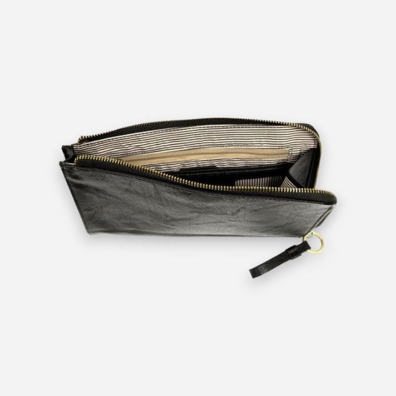 Karina combines sleek styling with uber-organization in a beautiful antique look vegan leather! The ultimate in versatility, this bag can be worn as a crossbody, carried as a clutch or as a wristlet. The included bonus wallet with credit card slots, ID window, zippered change pocket and billfold will keep your organized on the go and can be carried separately.