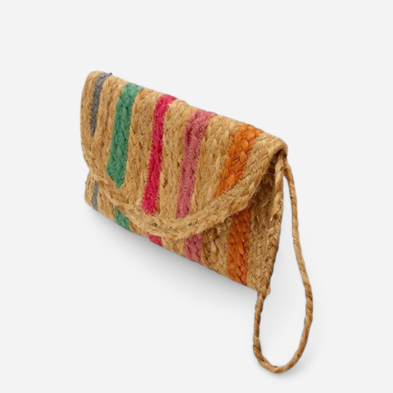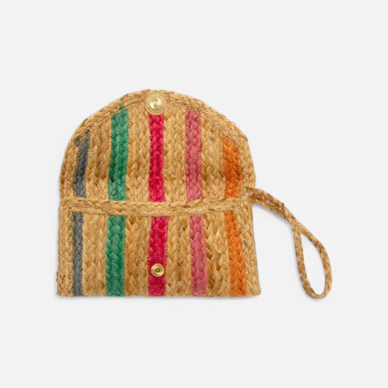 This slim envelope clutch is accented with a rainbow of beautiful bright stripes to match any of your summer looks. The wristlet strap makes it easy to carry and will look beautiful with almost any color!