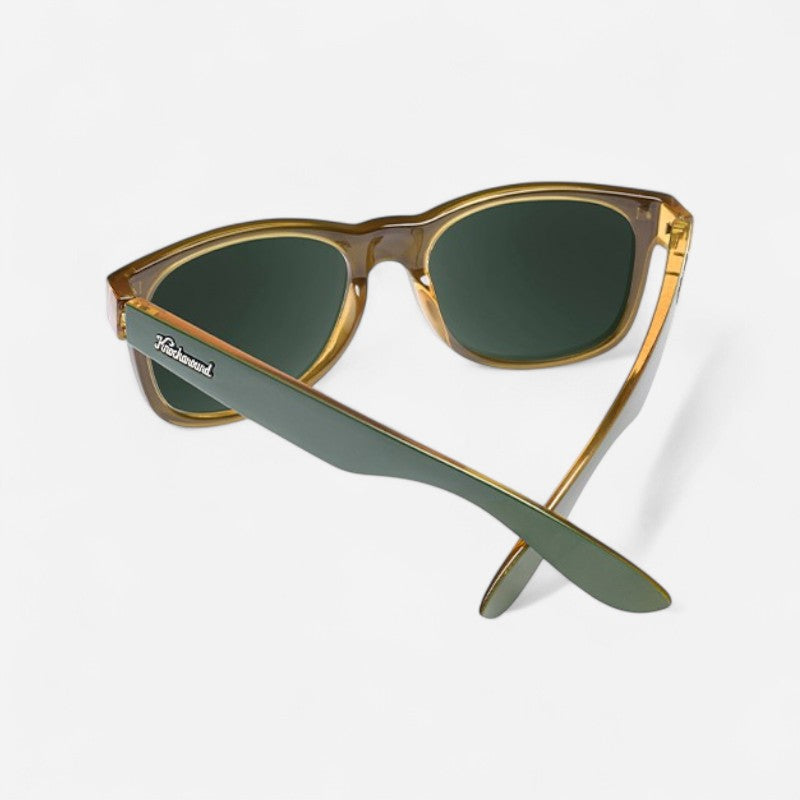 Hot as the desert sun and wild as a pack of coyotes, our Coyote Calls Fort Knocks are ready to take on the world. Army green frames with amber interiors blend in with the arid landscape, sitting snugly on medium to larger face shapes. There’s no need to fear those piercing rays either, since the polarized aviator green lenses have UV400 protection built in. You get the style you’ve come to expect from Knockaround with the durability synonymous with Fort Knocks, all in one pair of shades.