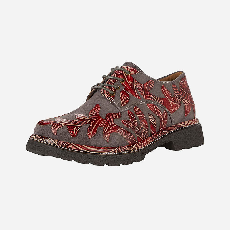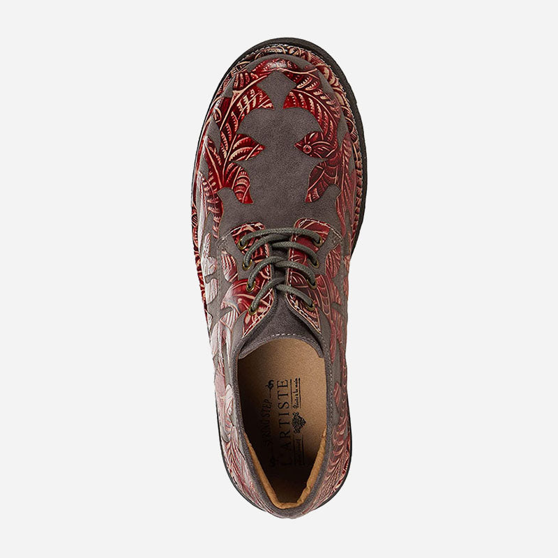 Menswear-inspired lace-up shoe showcasing beautifully textured onsets on a flexible, comfortable sole.