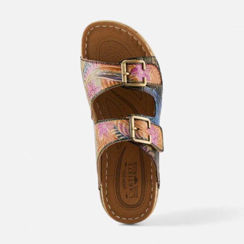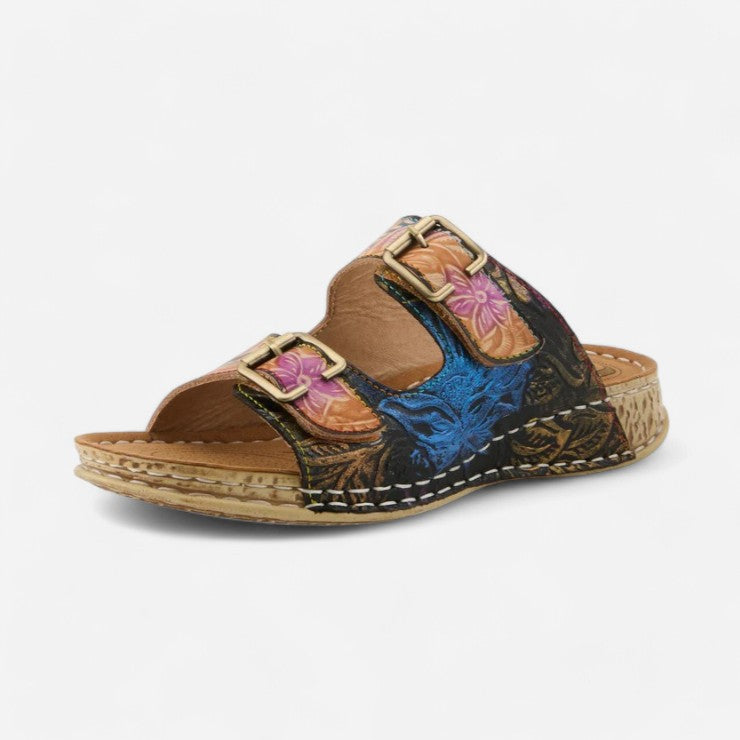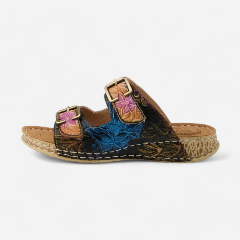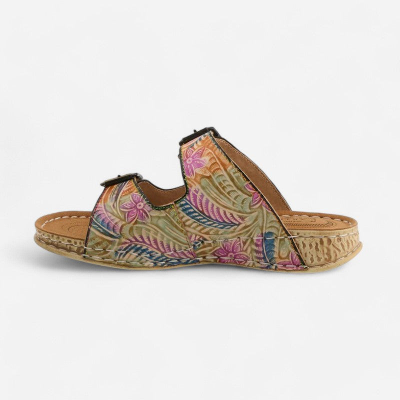 The intricate floral design and metallic accents create a stunning contrast that's sure to turn heads. But don't let its beauty fool you - this sandal is as comfortable as it is stylish, with a plush footbed that molds to your feet for a custom fit. SUNJAI will definitely elevate your summer style with effortless flair on those casual days.