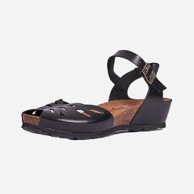A modern take on a retro favorite, this pretty peep toe sandal presents more than just good looks. A soft cork footbed offers custom support, while the secure ankle strap and modest wedge create a winning combination of style and wearability.