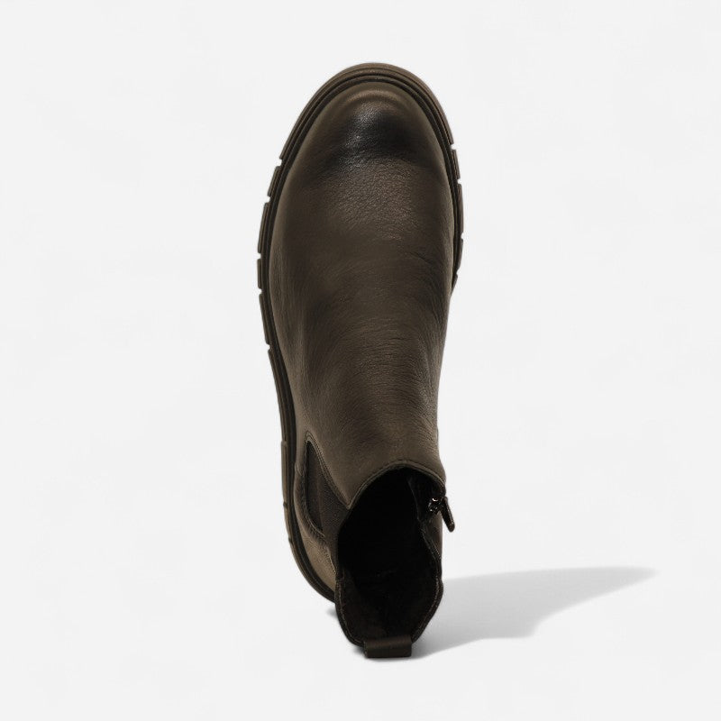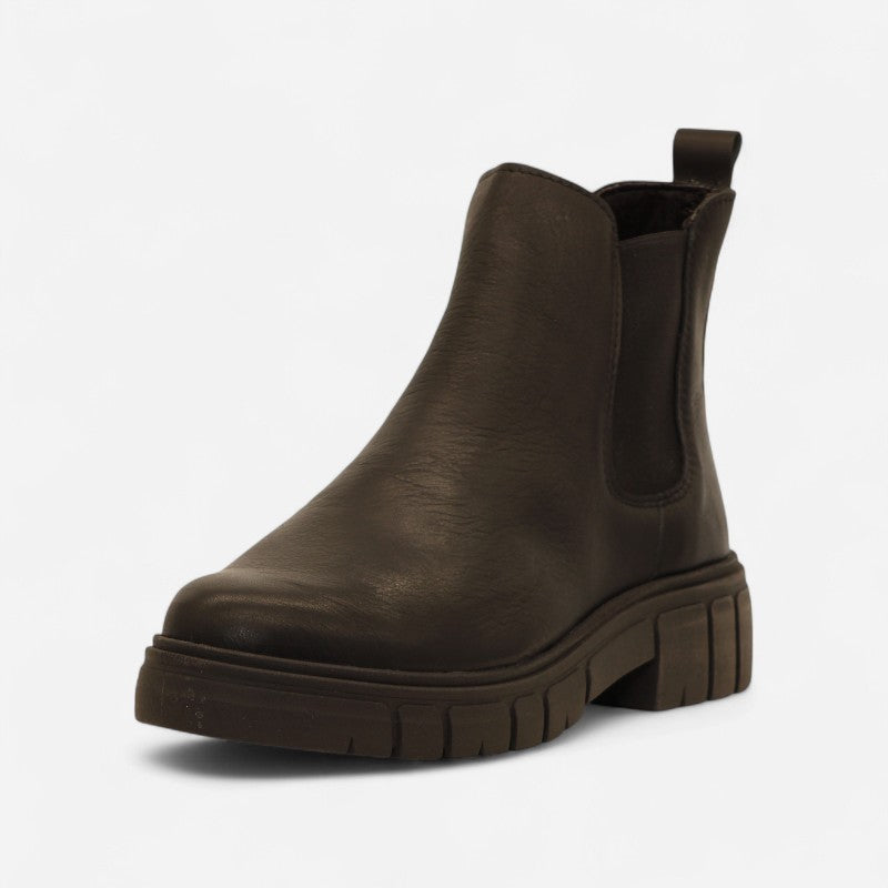 This trendy take on the classic pull-on leather Chelsea boot has plenty of goring for the perfect fit and a chunky outsole for super-fun styling.
