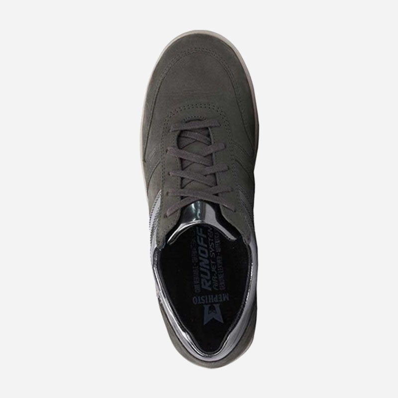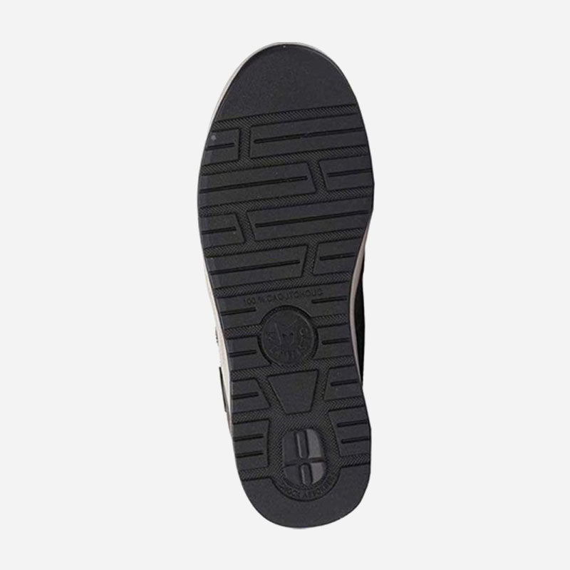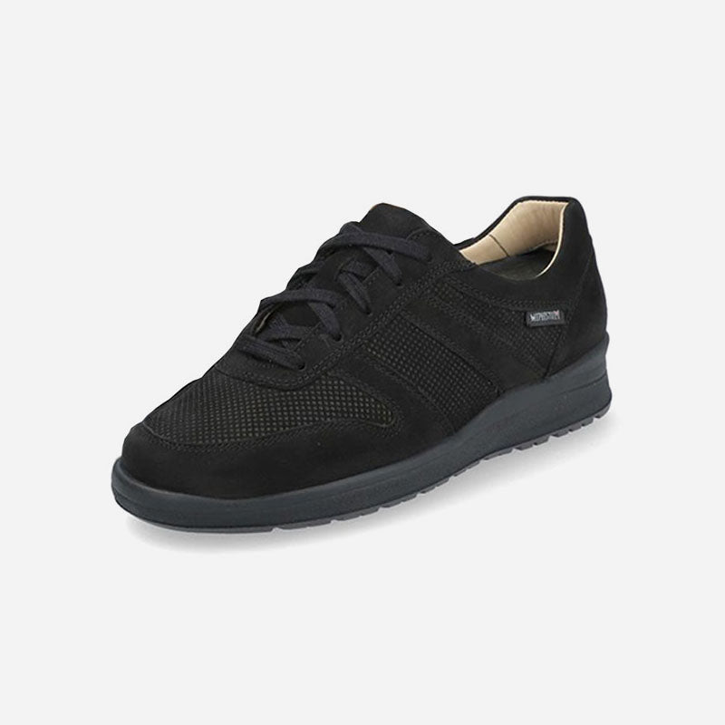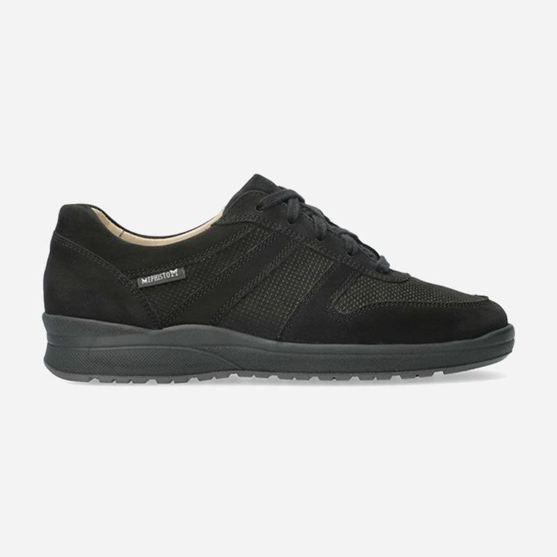 Women Sneaker Black Leather Nubuck. This finely perforated sneaker adapts to any situation, inspiring a sensation of weightless comfort. The SHOCK-ABSORBER, in the outsole, and the detachable insole, with integrated SOFT-AIR Technology, help to minimise impact for a gentle, effortless walk. This lace-up shoe guarantees optimum comfort. Its lining is made of leather, with a touch of textile for perfect foot support.