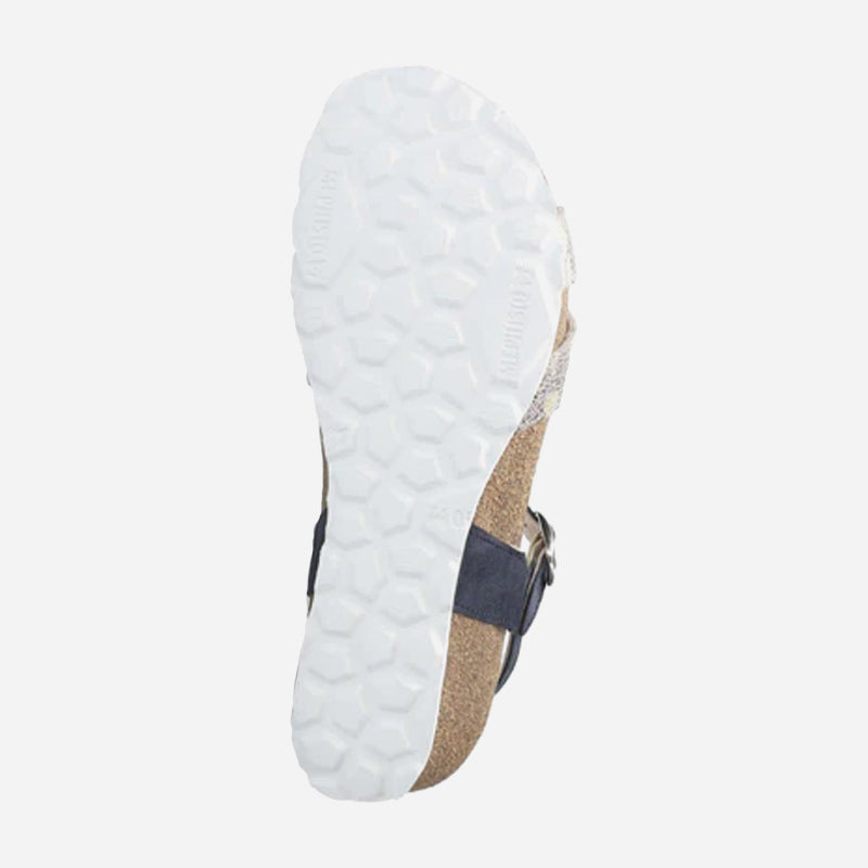 Adjustable, band design accommodates various foot types. Air-Relax cork/latex footbed is anatomically designed and absorbs shock, 100% Caoutchouc outsole with shock absorber heel reduces the jarring effects for comfortable stride