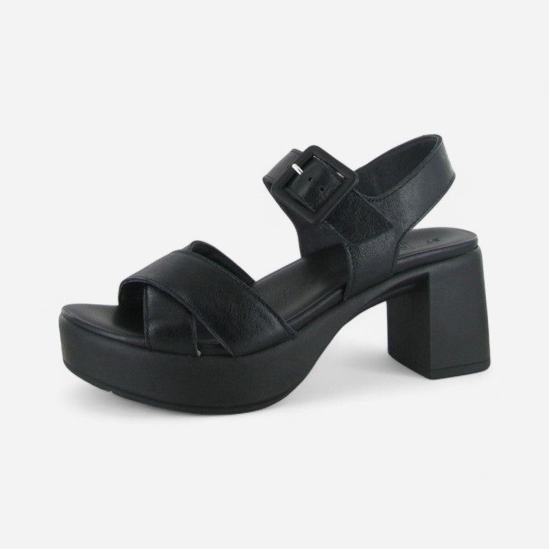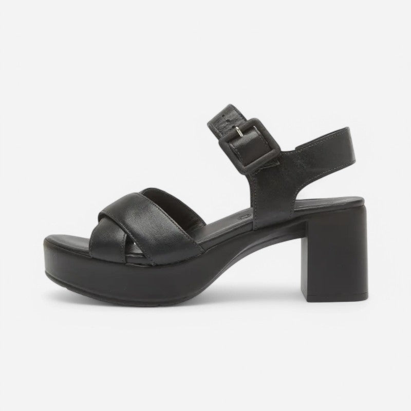 A chunky heel and platform give classic '90s-inspired style to a strappy leather sandal fitted with a cushy footbed for comfort.