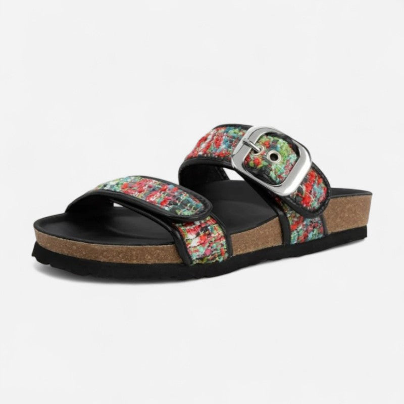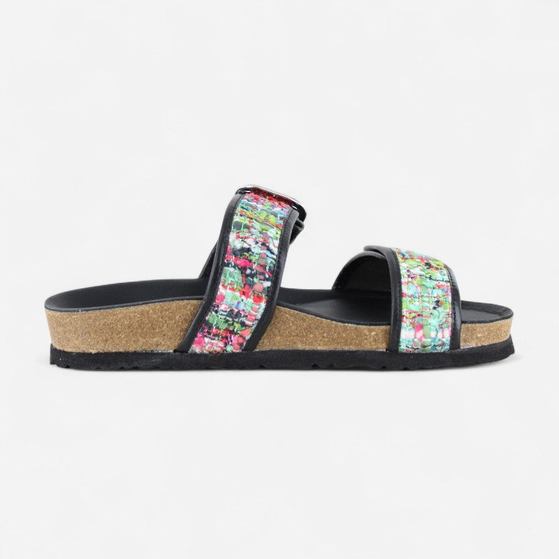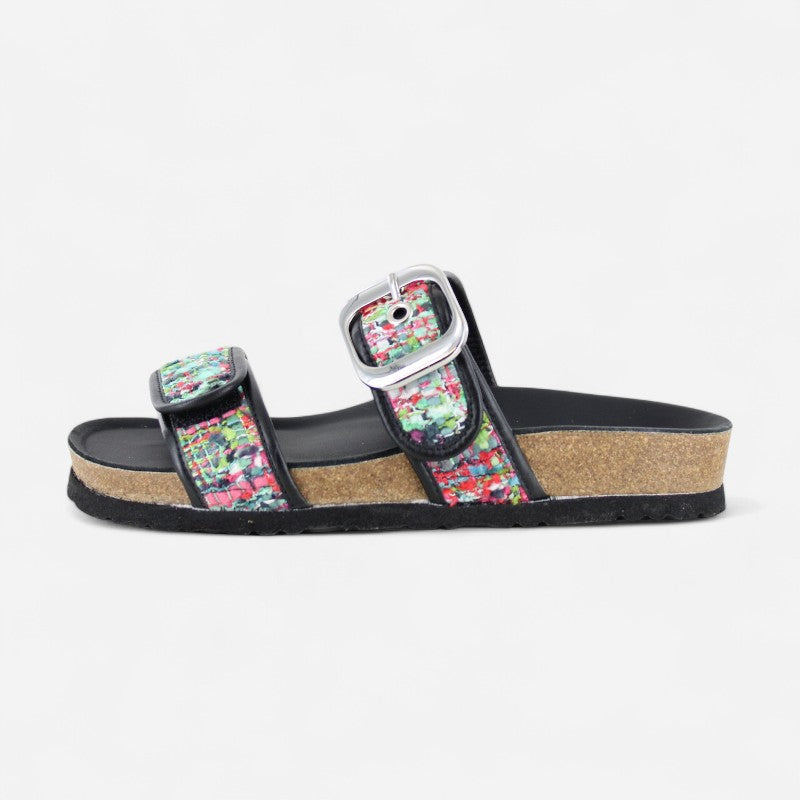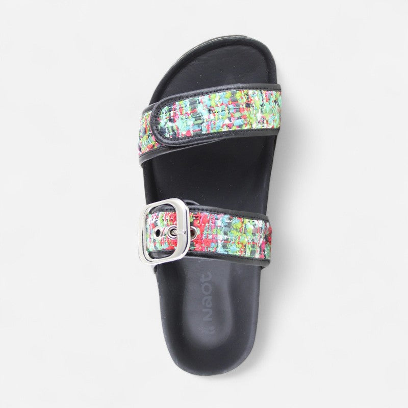 Introducing the Naot Nashville - your ultimate slide for vibrant style and everyday comfort. This slide features multicolor tweed or raffia and a fully adjustable buckle strap with hook and loop closure, ensuring a secure and personalized fit. Designed to blend practicality with a touch of flair, Nashville adds a splash of color to any outfit, making it perfect for any occasion. Crafted with Naot's anatomic cork and latex footbed wrapped in pampering suede, mold to the shape of your foot with wear, offering customized support. The Classic features a 1.25" EVA sole. Plus, it's American Podiatric Medical Association (APMA) accepted for promoting good foot health.