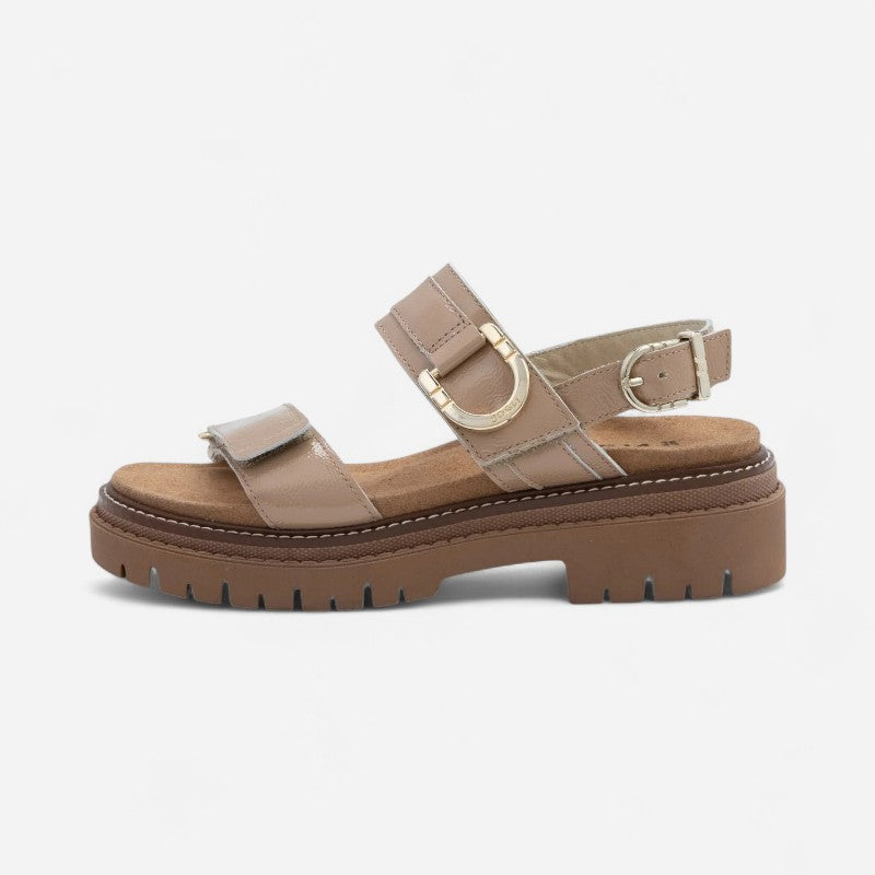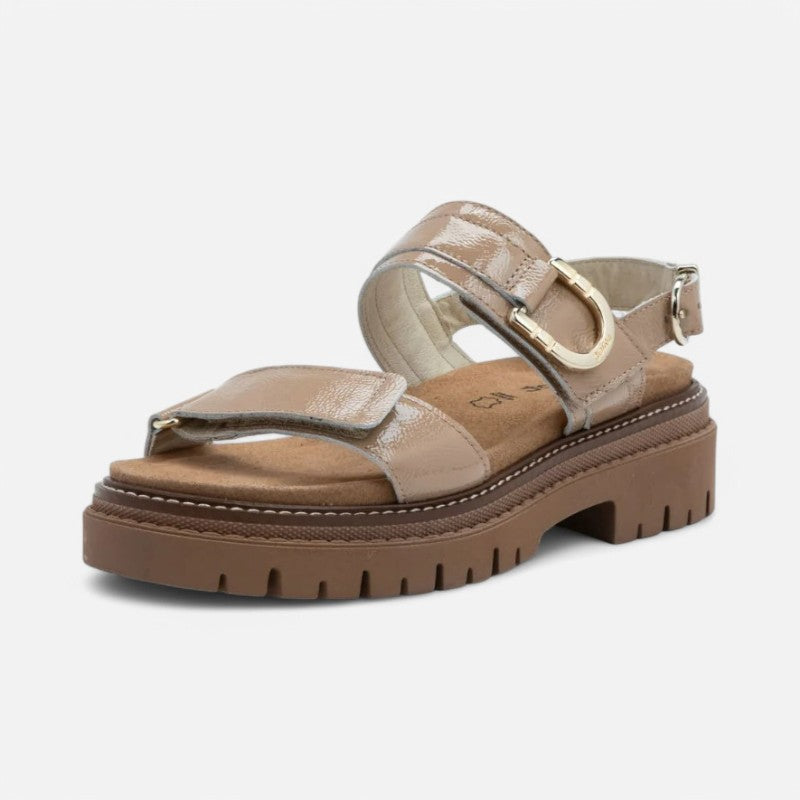 Introducing Trinity - where rugged elegance meets superior comfort. Featuring a buckle backstrap and hook and loop straps for a customizable fit, this sandal is adorned with strikin...
