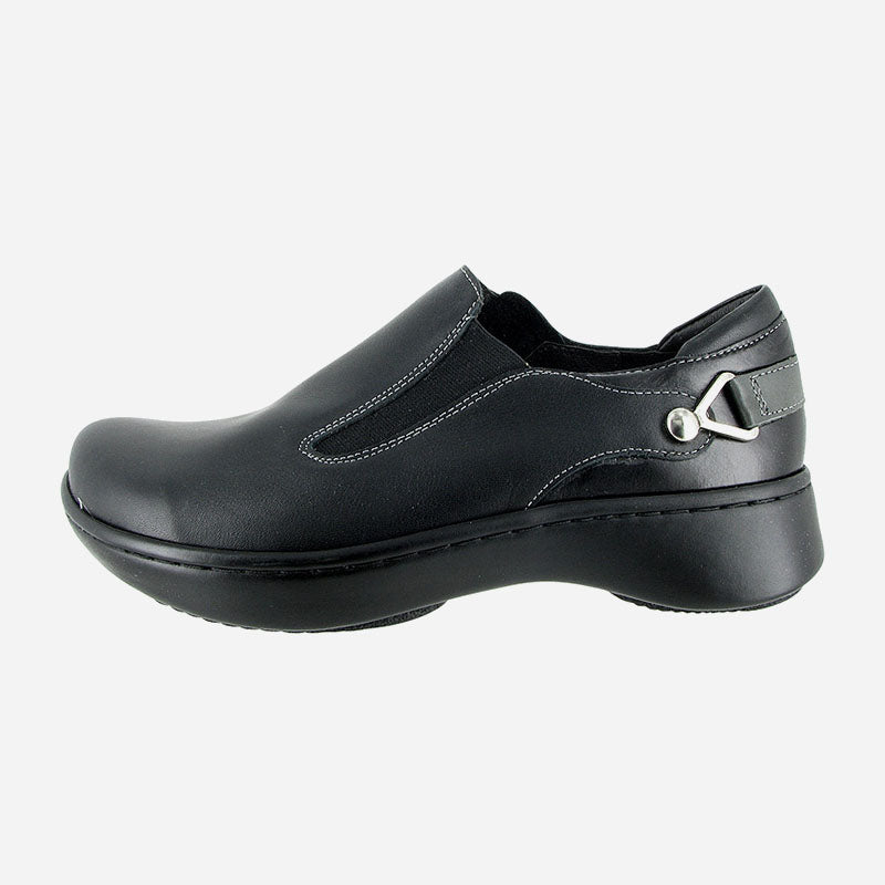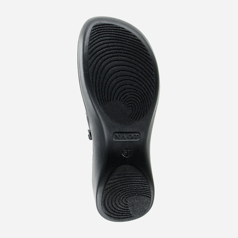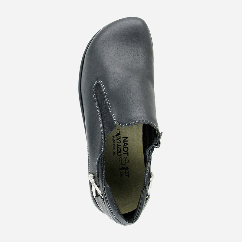 The Naot Nautilus is a great everyday shoe with a contrasting back leather strap and rivet accents. This style has a zipper for accessibility & gore for adjustability. The Nautilus has a padded heel cup for comfort and support. Naot's removable, anatomic cork & latex footbed is wrapped in pampering suede and molds to the shape of the foot with wear. The Shell Collection features a 1.5" polyurethane sole which is extremely lightweight, durable & slip resistant.
