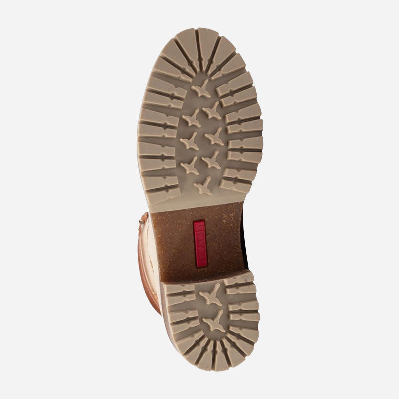 Inspired by the mountains, but made for walking in the city. The Aspe ankle boot remains one of the most popular designs for its style and versatility. It has a great fitting last and a cushioned insole. Its two-colour midsole includes a strip of walnut shell chips plus the serrated outsole ensures grip and prevents slipping. The heel is about 4 cm, and the total boot height is 13 cm. The mountaineering details, like the hook closure, the split tongue and the padded collar, allow them to adapt to all types of feet. Once adjusted, you won't have to unfasten them again, as you can put them on and take them off using the inner zip.