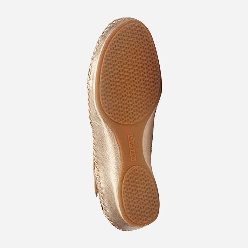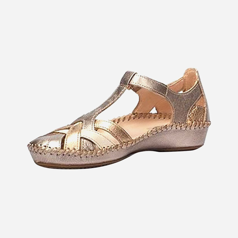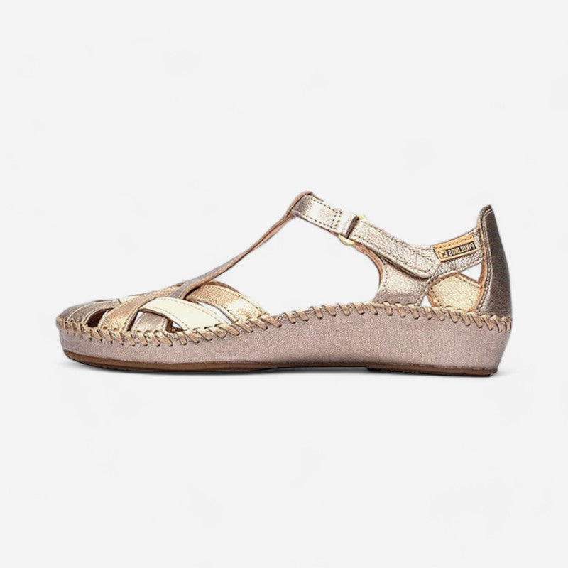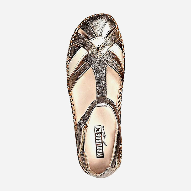 TheĀ P. Vallarta (655-0732CLC1) is a new shimmery sandal from Pikolinos for women. Tonal metallic straps are woven across the upper to create a chic yet eclectic summer style. Low wedge design with a cushioned insole make this new Pikolinos style as comfortable as it is stunning.