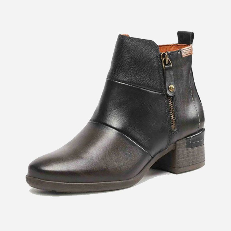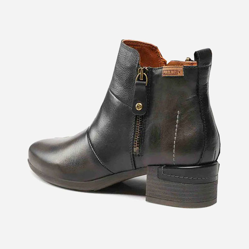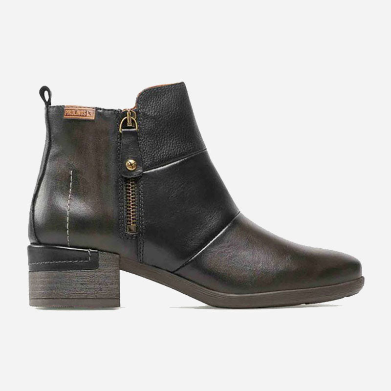 The Pikolinos MĂĄlaga womenâs ankle boots express the importance of small details and prove that simplicity is beautiful in any situation. Youâll love wearing this unique, comfortable boot, thanks to the medium heel and leather design.