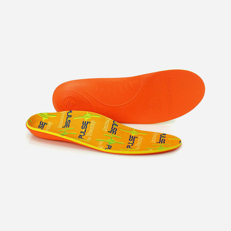 Powerstep PULSEĀ® Insoles were designed specifically for use in advanced running shoes during rigorous athletic activity. The Powerstep Pulse insoles feature a unique design, with a built-in arch support and heel cradle, stabilizes the foot, and improves alignment. This motion control, along with targeted dual-layer cushioning, helps absorb shock at impact to reduce stress on the feet, ankles, and other joints.