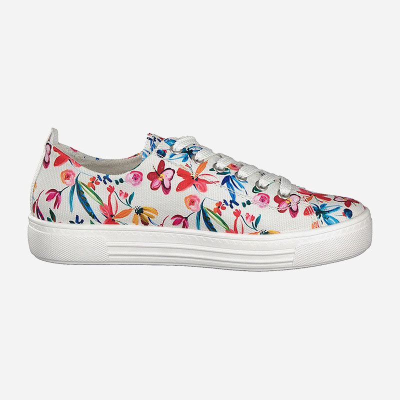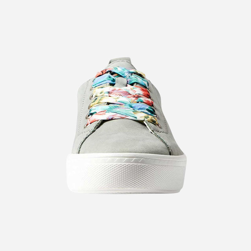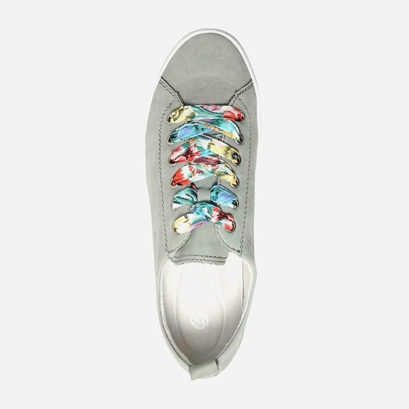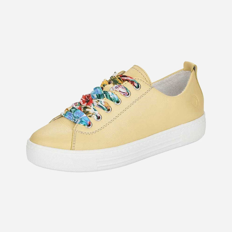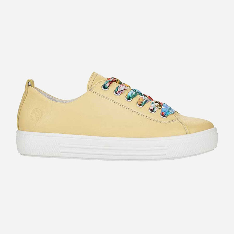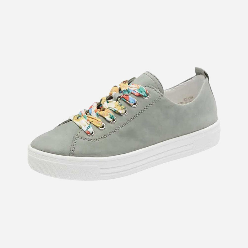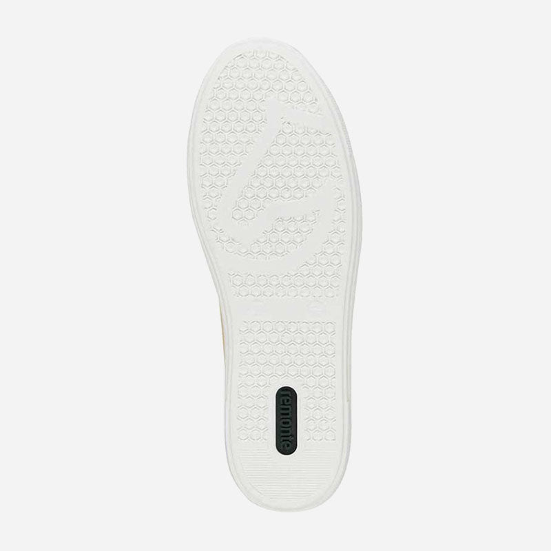 This sneaker from Remonte has an upper made of high quality, extra soft suede. The contrasting sole in white continues the trendy look with its two blue accent stripes. The natural look of the leather sneaker is supported by the noble finish, the darker color of the application on the heel, and the lacing. The ultra-soft Remonte SoftFoam insole makes you feel like you're walking on clouds in everyday life - the breathable sports lining ensures that you don't break a sweat.