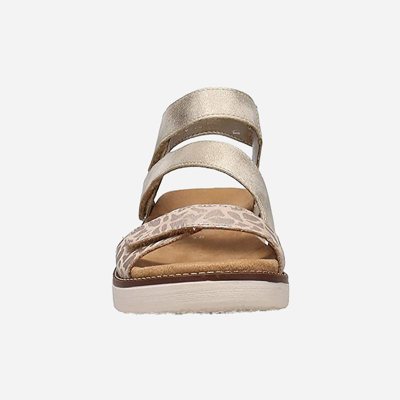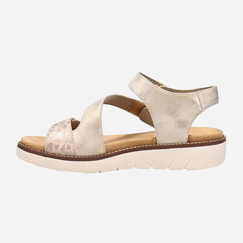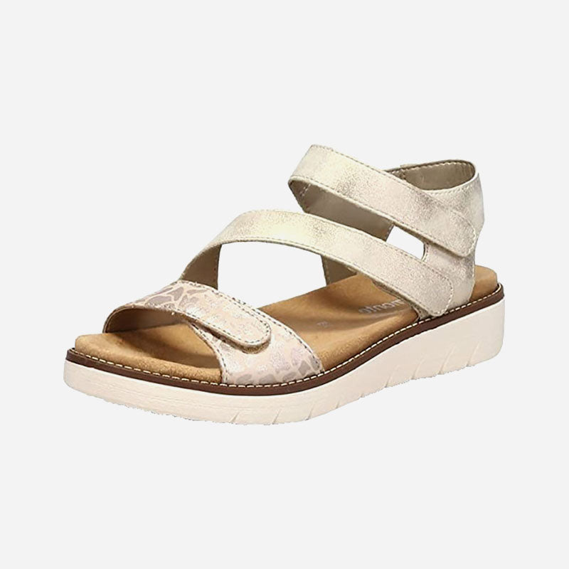 A leather sandal ensures all-day comfort with adjustable hook-and-loop straps, a shock-absorbing footbed and a lightweight, flexible sole.
