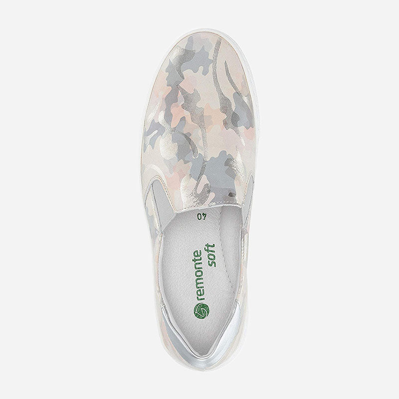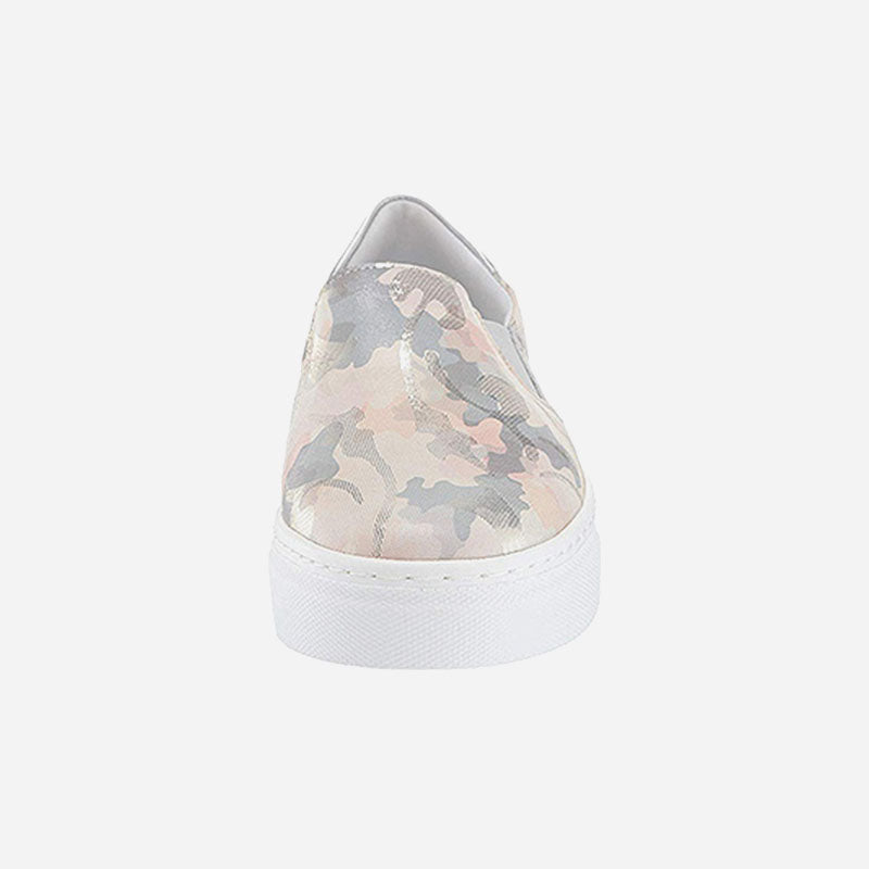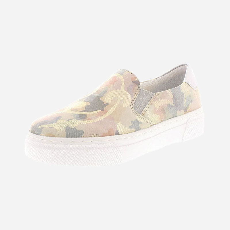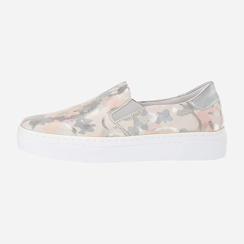 The Pamplona (R3100) slip-on sneaker by Remonte is ready to help you bring in the spring weather. The extra soft leather footbed provides incredible comfort for all day walking. Double goring allows for easy on/off and the perfect fit. The pretty pastel camouflage upper makes this shoe soft and feminine. Pair it with your cream sweaters and light wash denim to ring in the warmer weather. Easy on and off style means getting ready is a flash