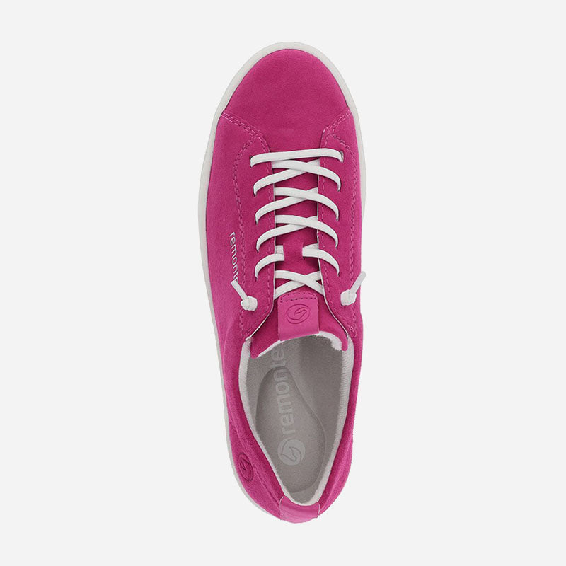 These comfortable remonte sneakers for women made of suede leather impress with a cool look and functional power. The white lacing ensures that the shoe always fits well. Thanks to the tried-and-tested remonte Lite ?n Soft technology, a super light sole and a soft interchangeable footbed come together