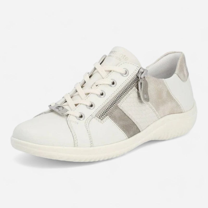 This low-profile leather sneaker offers both convenience and fashion, featuring a unique zip and lace closure. Say hello to a customized sneaker that's ready to accompany you through your busy day.