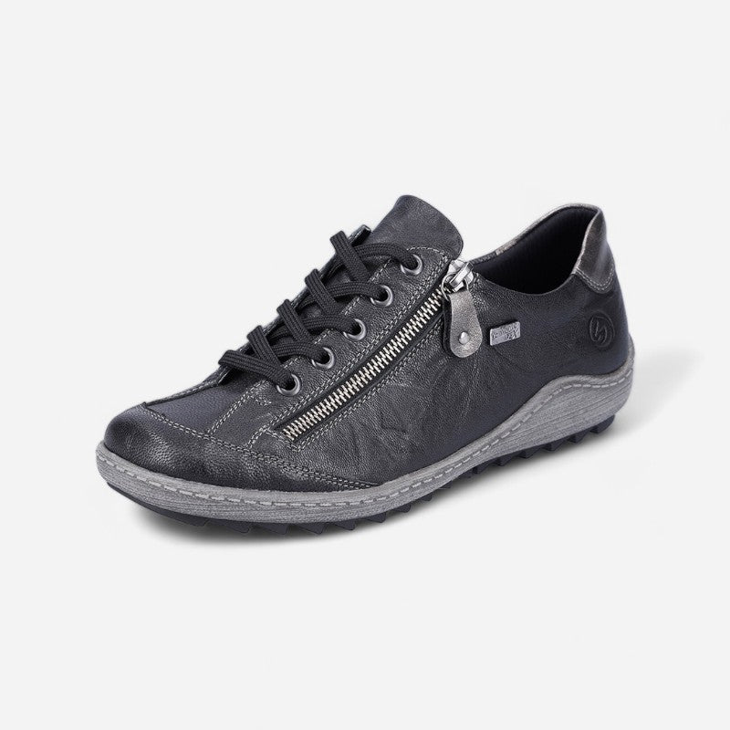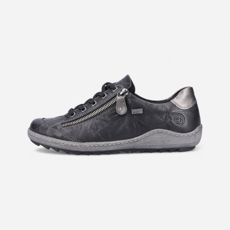 Here is an adorable water-resistant leather sneaker that complements your style while providing the best of modern fashion-comfort technology. With its laced-up adjustablity, easy on/off side zipper, Memosoft cushioning, and rubberized outsole, you'll walk in cushioned confidence all season long.
