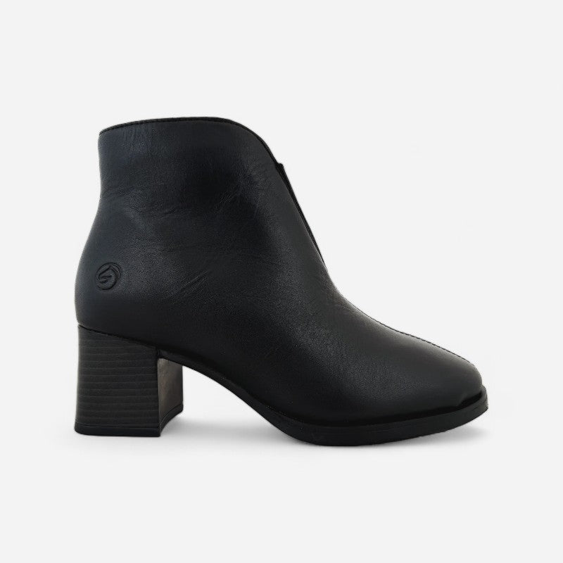 How can comfort be so stylish? These gorgeous ankle boots by Remonte made of smooth leather are an absolute must-have in every shoe wardrobe. The inside zipper and elastic V-gore makes it easy to put on and take off the shoe. The flexible and cushioning profile sole with block heel is complemented by the padded exchangeable footbed, which ensure all around comfort together.Â