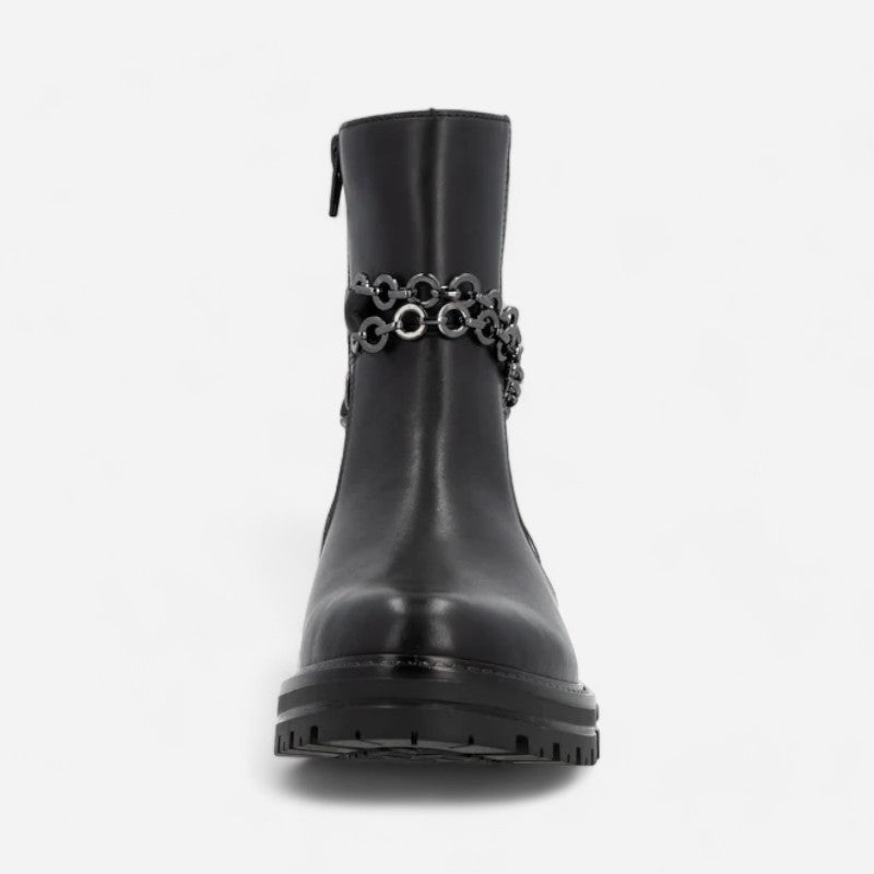 The full load of style vibes! The night black remonte ankle boots made of smooth leather are an absolute must-have in every shoe cupboard. A zipper allows for a quick and easy entry. The removable stylish chain around the shaft is a real eye-catcher. The design is complemented by a removable insole combined with a grippy and flexible sole with block heel. You can't get more style than this!
