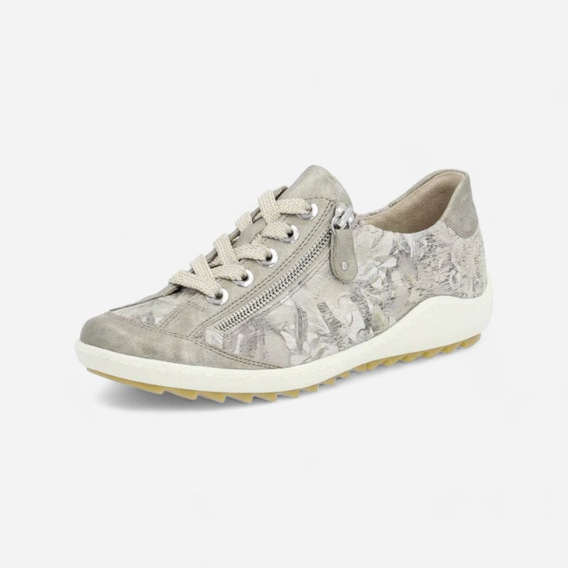 Here is an adorable water-resistant leather sneaker that complements your style while providing the best of modern fashion-comfort technology. With its laced-up adjustablity, easy on/off side zipper, Memosoft cushioning, and rubberized outsole, you'll walk in cushioned confidence all season long.