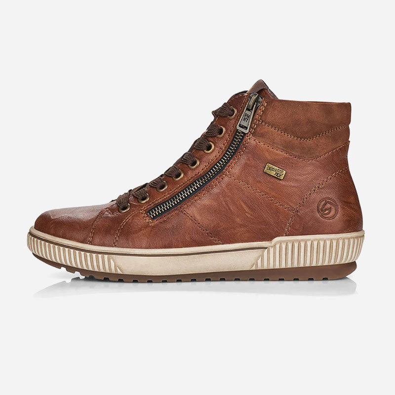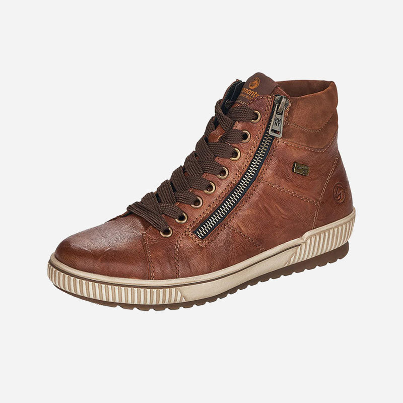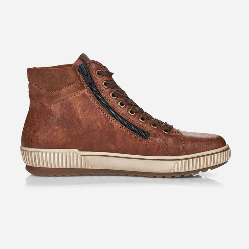A shoe for all occasions! These blue remonte lace-up boots made of smooth leather will impress fashion-conscious women with their great features. The clever combination of lacing and zipper makes the shoe easy to put on and take off. A flexible and cushioning sole as well as the padded and removable insole are further arguments for these boots. The comfort width offers enough space for the feet to feel comfortable even when worn for longer periods.