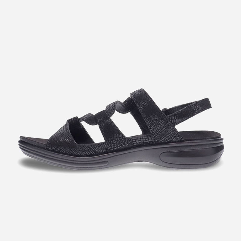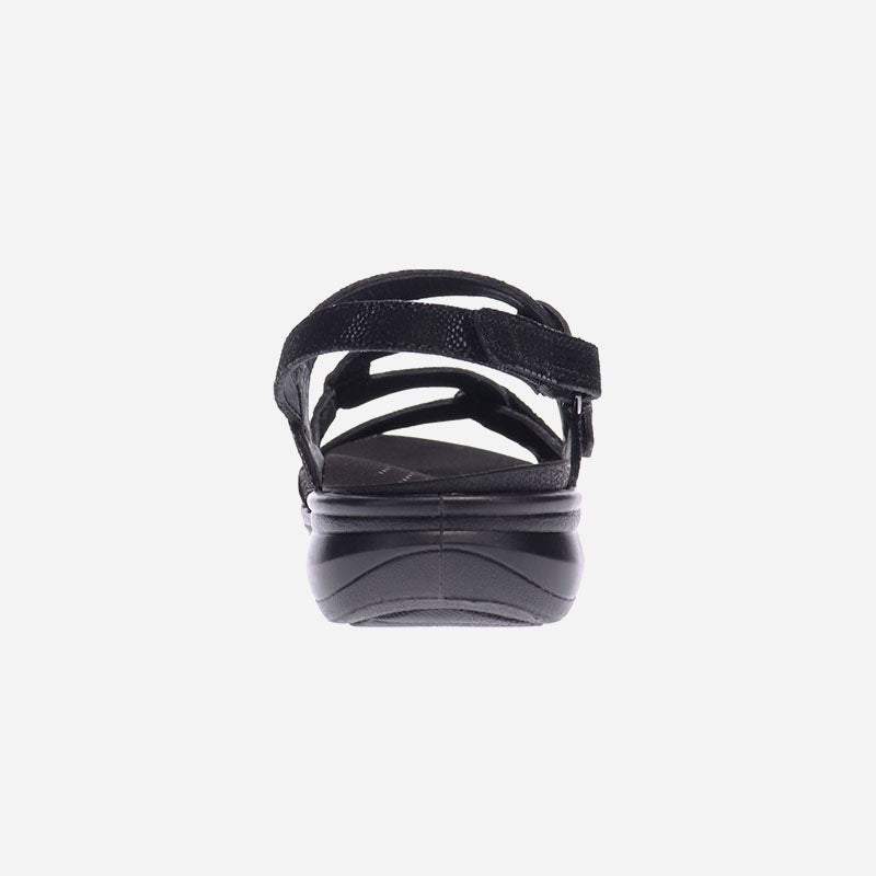 A versatile back strap sandal that is available in an assortment two widths. The contoured footbed cushions and supports the foot and is removable to allow for custom footbeds.