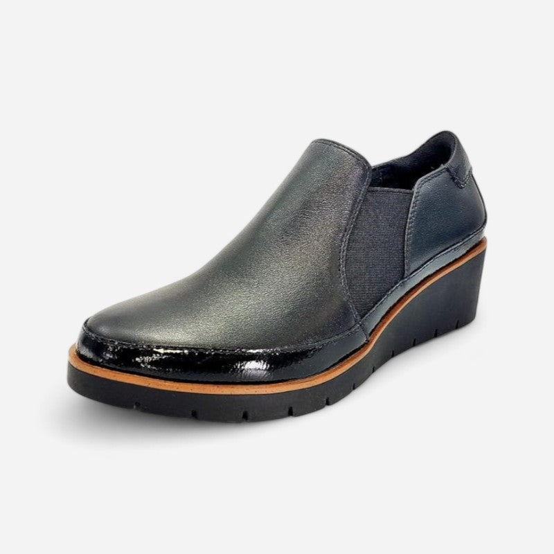 Forget foot fatigue with the Mykonos women's loafers for plantar fasciitis. These beauties are designed with our new wedge construction, Margot, elevating you to new heights. Made for simplicity, these arch support loafers have elasticated sides that make getting into and out of them a breeze. Style yours with absolutely everything from midi dresses to power suits - they’re a real wardrobe workhorse that can also be packed as your go-to travel shoes.