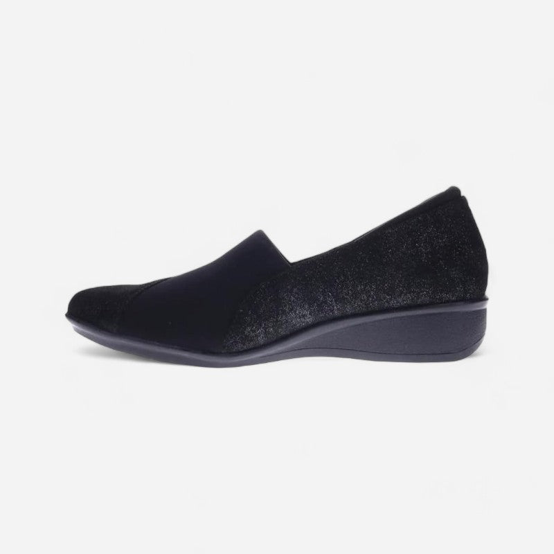 - Combination leather and stretch uppers with soft textile linings, ideal for bunions, swelling or sensitive feet.