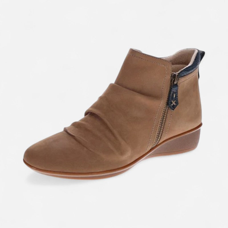 It’s the season for wedge boots and the Plymouth ankle booties tick all the boxes. Their understated construction, available in smooth leather or nubuck, is chic and only gets better with wear. These orthotic friendly boots feature a low wedge and forefoot cushioning for all-day walking, with a removable arch-support insole that can be replaced with your own custom version. We can’t wait to wear these removable footbed boots with oversized turtlenecks and skinny pants for a cozy look that epitomizes a balance of functionality and flare.