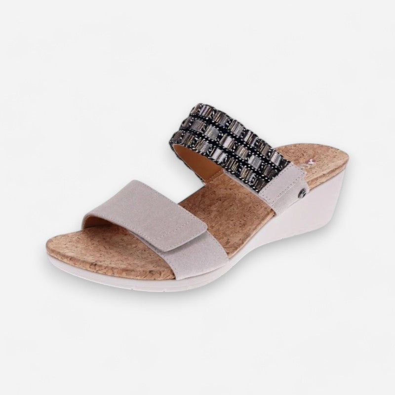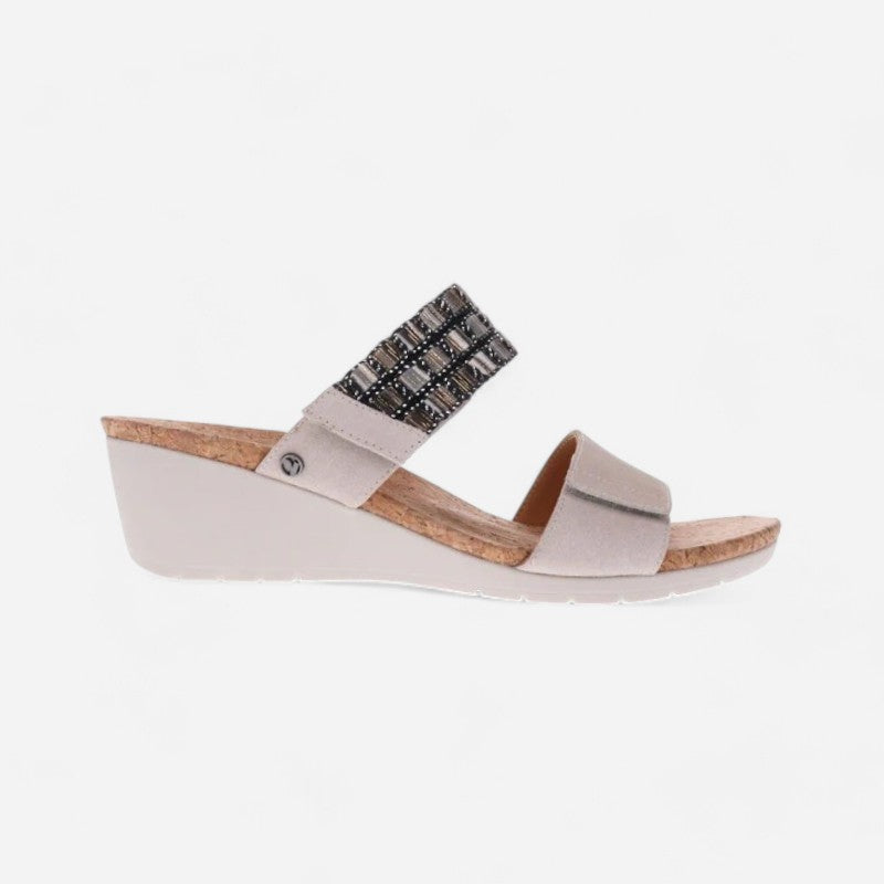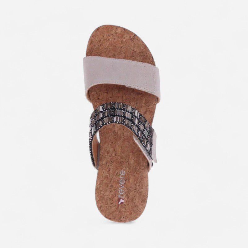 Slide on wedge sandals are a classic for a reason. Sorrento offers just the right amount of height while still staying super comfortable, making these orthotic wedge shoes a more practical option for walking the city and beach alike. We love the contrast of the metallic tile strap against the cork-wrapped footbed, which features a subtle yet functional metatarsal raise to reduce pressure under the ball of the foot.