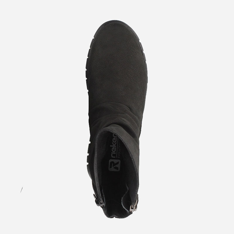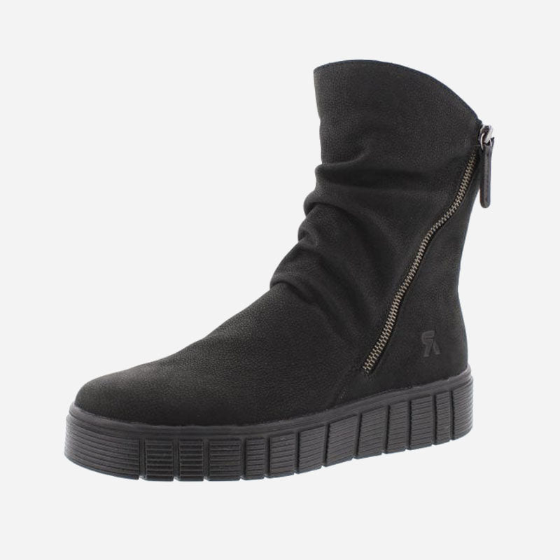 Step out in style and embrace the perfect combination of fashion and functionality with these black slouch boots from Rieker. The coated leather uppers, functional zips, and cosy fleece lining make them a must-have addition to your footwear collection. Equipped with both functional side and inside zips, these boots provide convenience and easy on-and-off access.