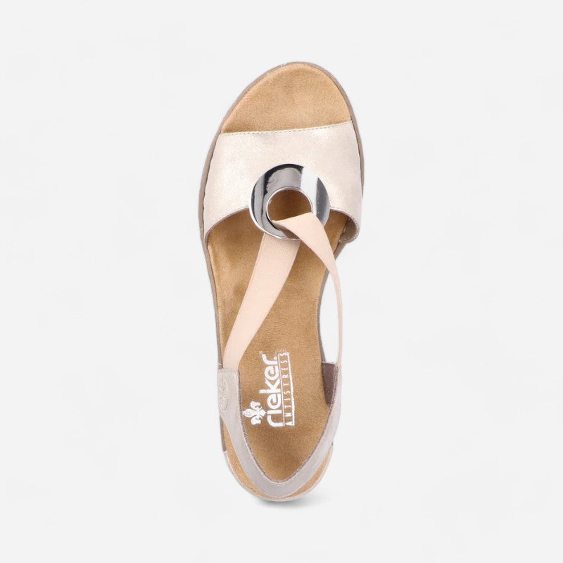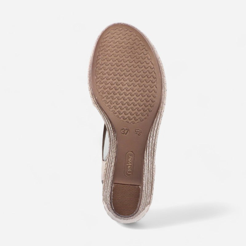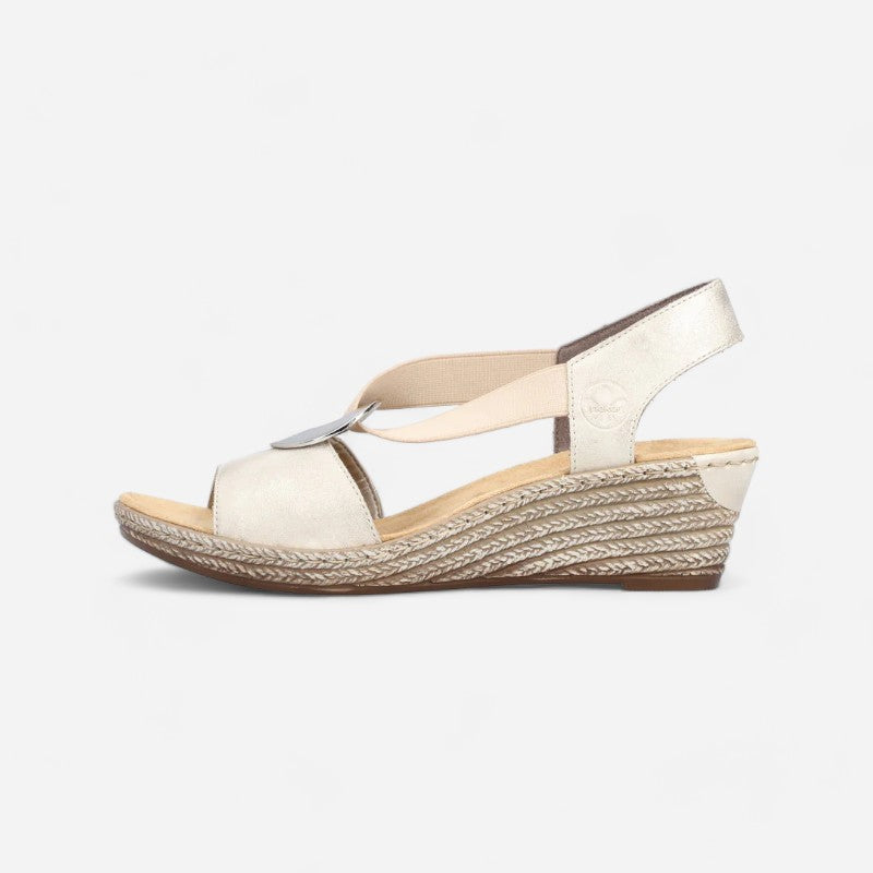 This sandal features a generous forefoot band and wide elastic straps that meet at the ankle for personalized comfort. Along with a casual but durable wedge sole, this is a terrific all-around summer footwear option!