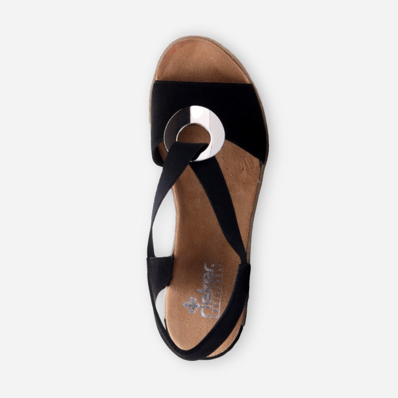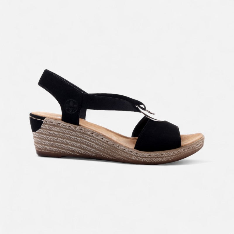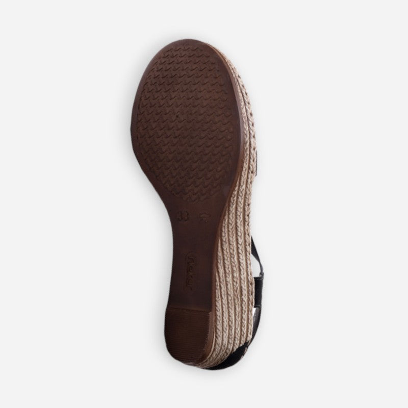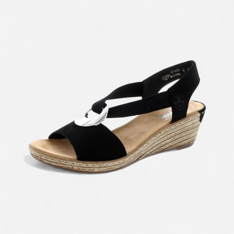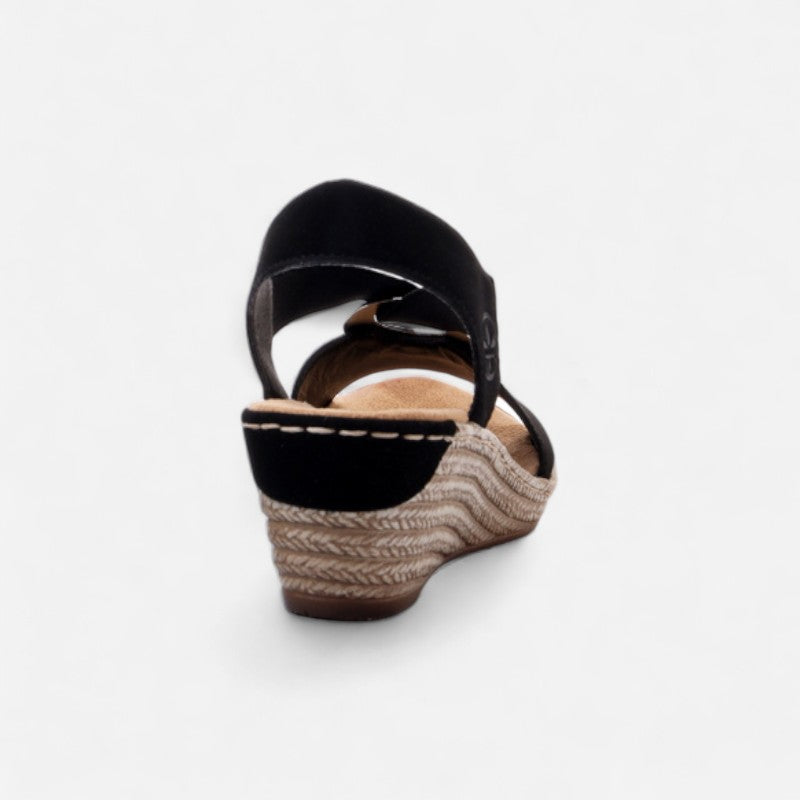This sandal features a generous forefoot band and wide elastic straps that meet at the ankle for personalized comfort. Along with a casual but durable wedge sole, this is a terrific all-around summer footwear option!