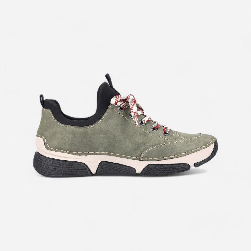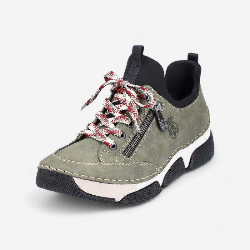 Great style details, easy-zip on/off, and a Riricon sole with excellent cushioning in the ball and heel of the foot for maximum shock absorption and stable traction all come together in this terrific sneaker.