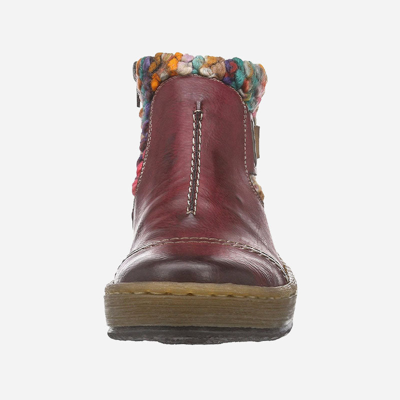 Looking for a cozy, versatile boot that also has an appealing splash of color? Look no further! With incredible cushioning, beautiful contours and expressive stitched detailing, this bootie is a smile for your feet!