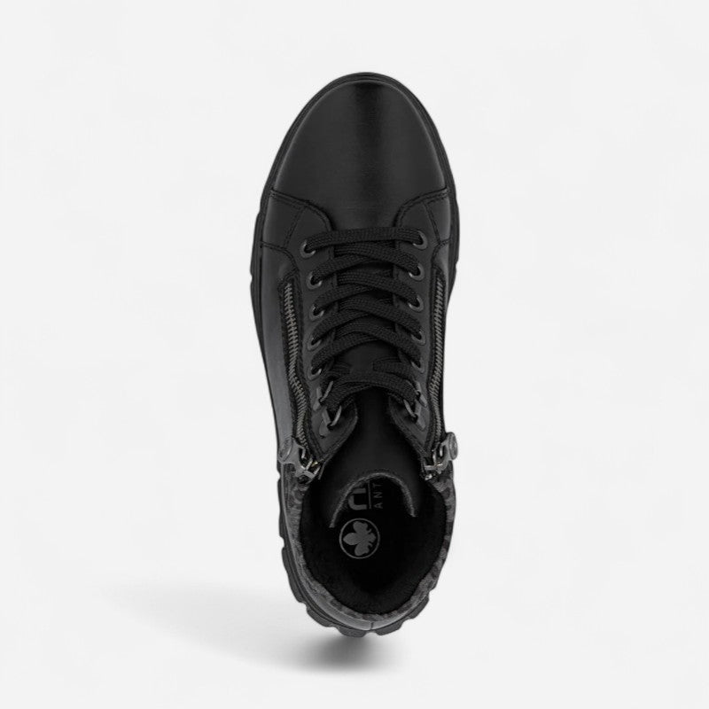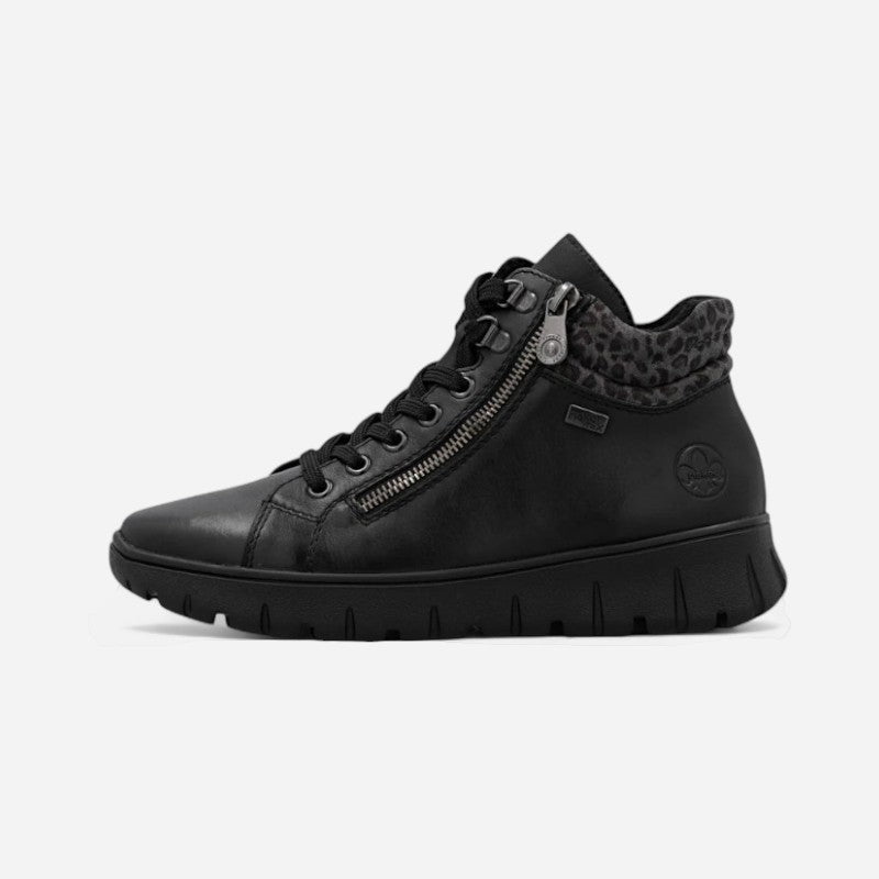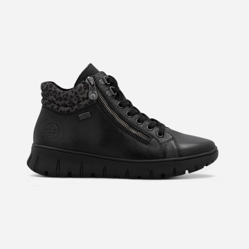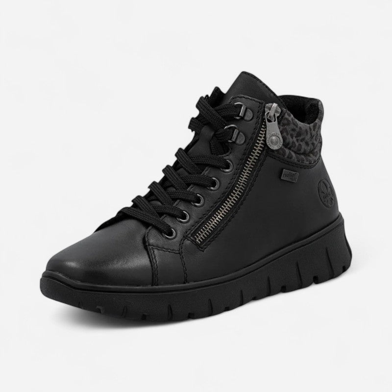 Holiday feeling for your feet! These Rieker lace-up boots are made of smooth leather and impress with their modern design and high comfort. The clever combination of lacing and zipper guarantees a perfect fit and optimal support. The padded shaft edge gives the shoe that certain something. The sole is both ultra light and shock-absorbing, offering a double sense of well-being at every step.Â