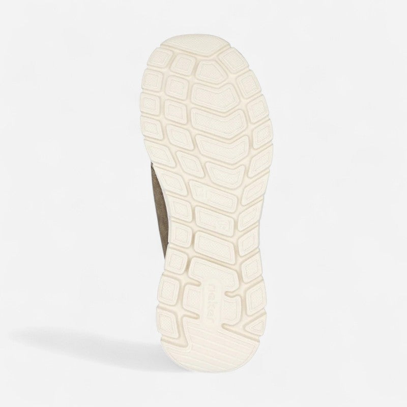 Ready2GO! Go for maximum comfort and ultimate style with these Rieker shoes. An elastic band is a great simplification especially when putting on and taking off the shoe. The sole is both shock-absorbing and ultra light, offering a double sense of well-being at every step. The cover sole is also extra soft. The comfort width offers the feet more space in the shoe. Thanks to the Ready2GO slip-on feature, there's no more bending down and no more creases on the heel part! Just slip in and go!