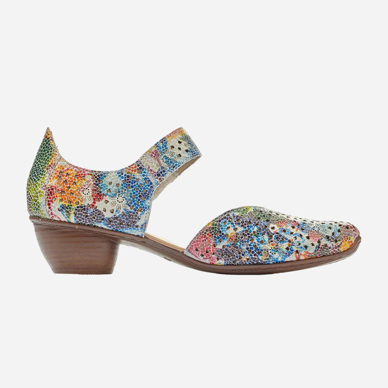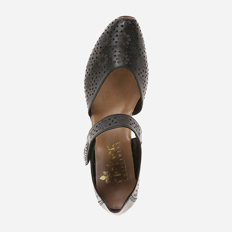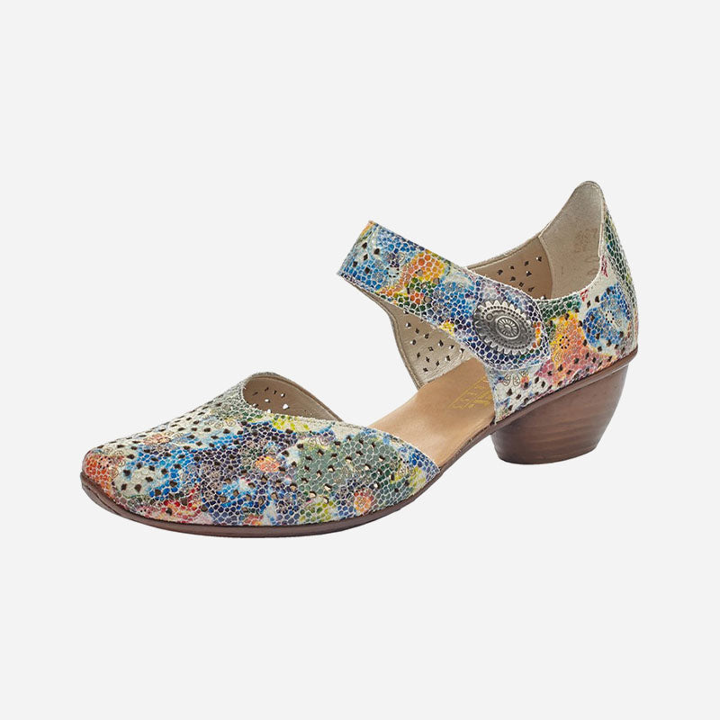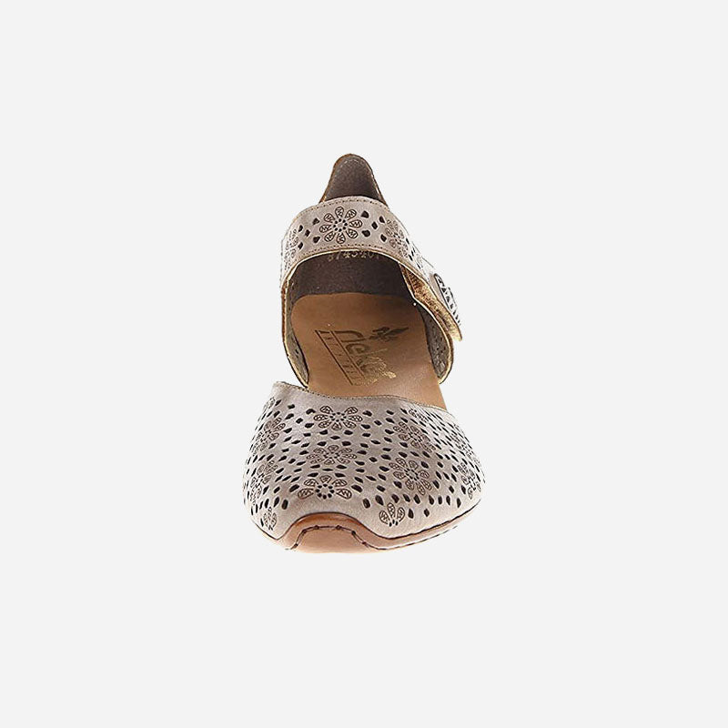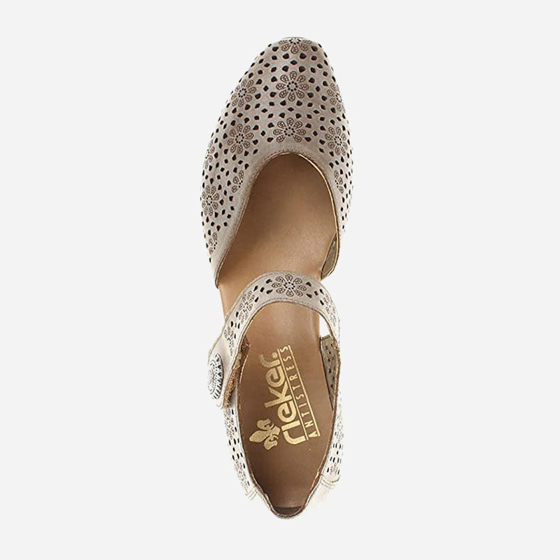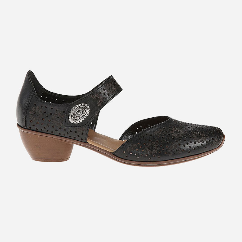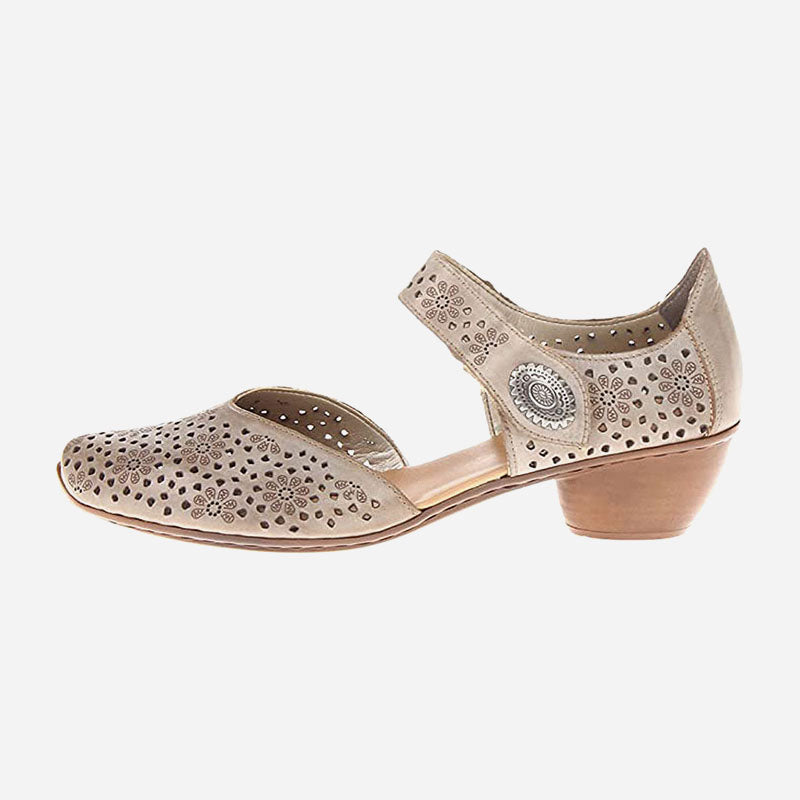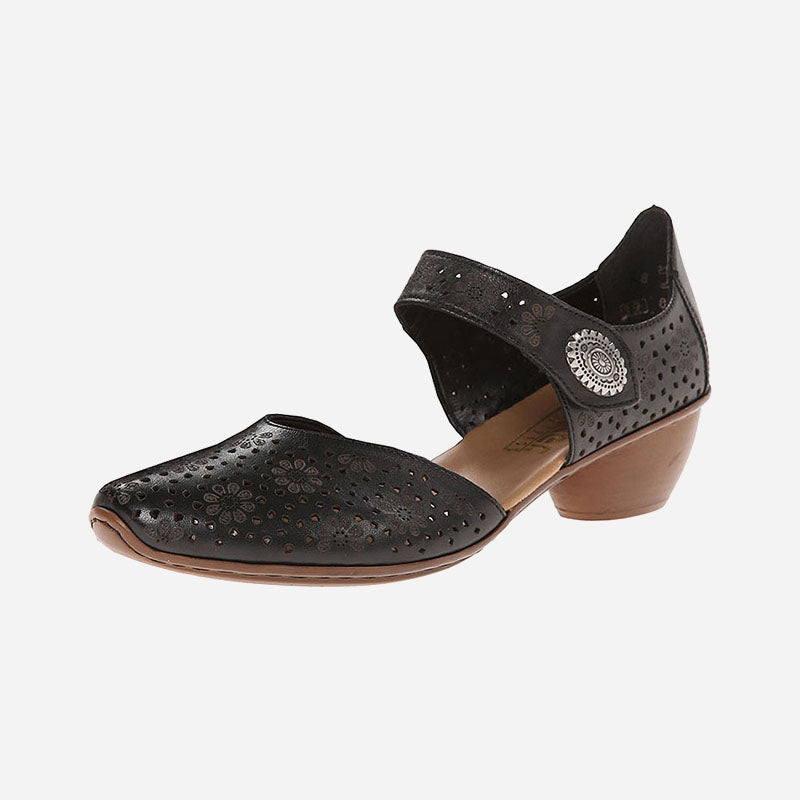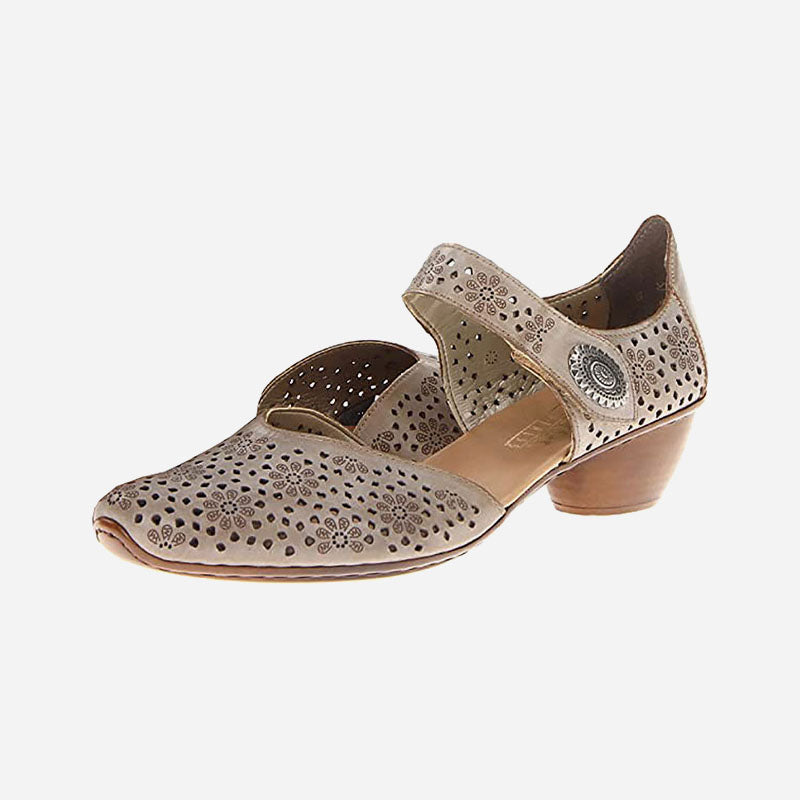 This daintily practical low-heeled beauty slips on with ease for occasions dressy or casual, with an adjustable ankle strap for a custom fit. Its all-over laser-cut design adds a unique flair to this timeless shoe.