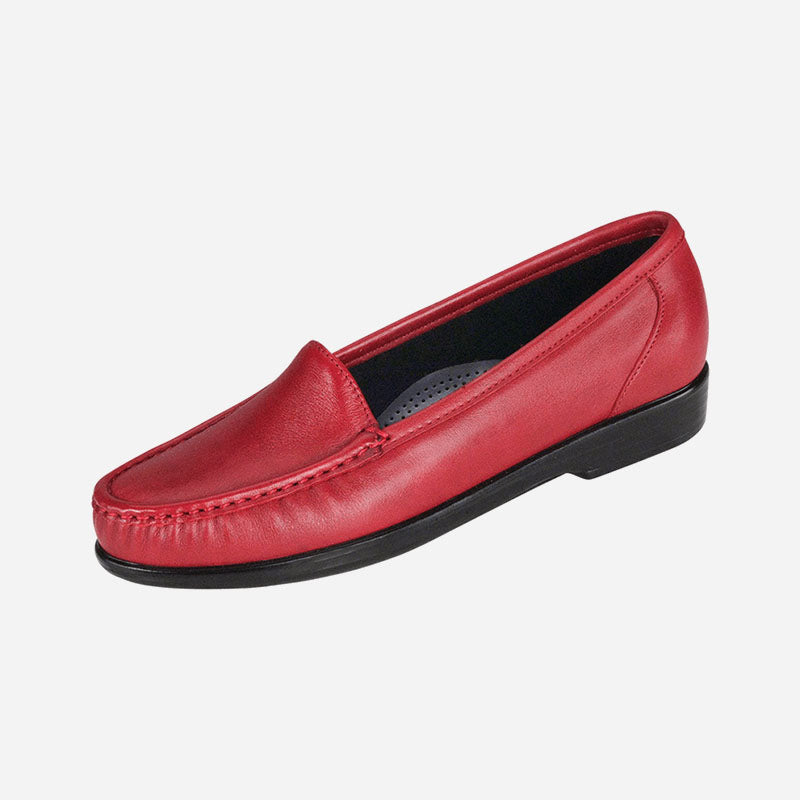 For those who like to keep it simple, here's a moccasin loafer with timeless style. Soft leather with padded lining wraps completely around the foot for a plush feel. A removable cushioned footbed and a lightweight shock-absorbing sole supports you with every step. Simplify features many beautiful smooth and textured leathers.