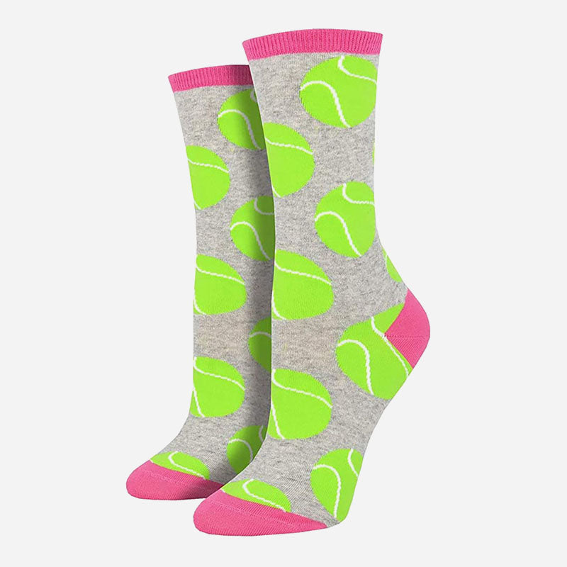 Take the court with you with theese Socksmith Set Point socks. Crew socks that sit at the calf. Sold as one-pair pack. Self-adjusting welt cuff keeps your socks from falling down as the day goes on. Seamless toe closure helps reduce chafing. Heathered design with tennis ball knit accents. 63% cotton, 34% nylon, 3% spandex. Machine wash inside out, tumble dry. Imported.