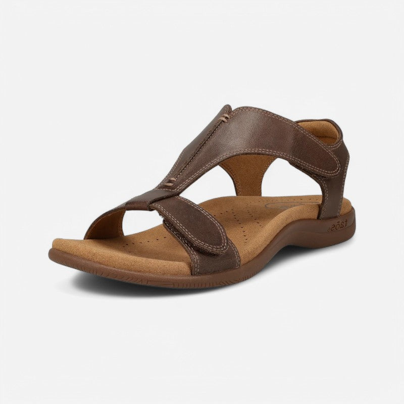 Welcome to The Show! This premium leather sandal has a patented shield strap design and two adjustable hook and loop straps for a secure fit. Detailed contrast stitching and seam design accent the upper. Imported Italian leather offers a rich look that is soft and wraps around your feet. With our signature SOFT SUPPORT™ footbed lined with buttery soft microfiber, treated with an antimicrobial shield, your feet will stay cool and dry! For maximum shock absorption, we use Cool Recovery Foam® padding on top of polyurethane. The outsoles are flexible, durable rubber.