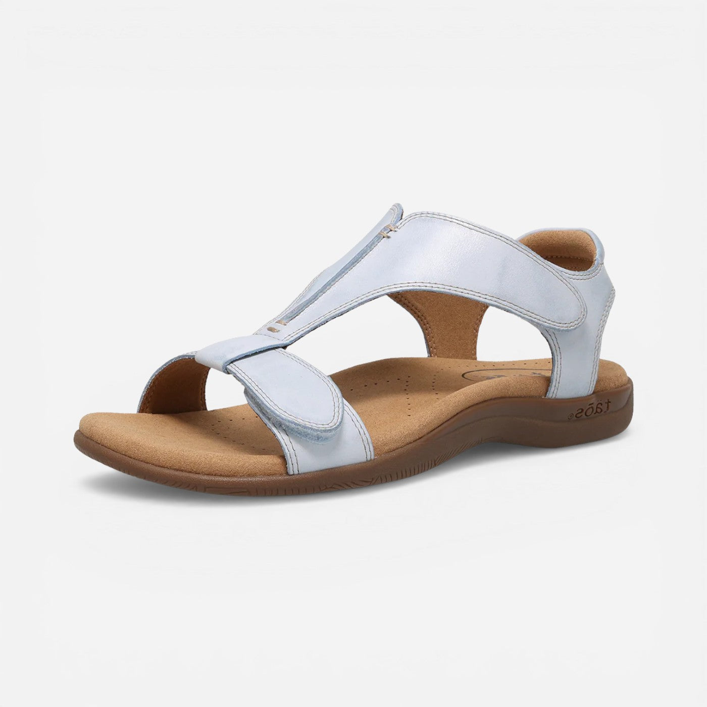 Welcome to The Show! This premium leather sandal has a patented shield strap design and two adjustable hook and loop straps for a secure fit. Detailed contrast stitching and seam design accent the upper. Luxe leather offers a rich look that is soft and wraps around your feet. With our signature SOFT SUPPORT™ footbed lined with buttery soft microfiber, treated with an antimicrobial shield, your feet will stay cool and dry! For maximum shock absorption, we use Cool Recovery Foam® padding on top of polyurethane. The outsoles are flexible, durable rubber so they're perfect for everyday wear!