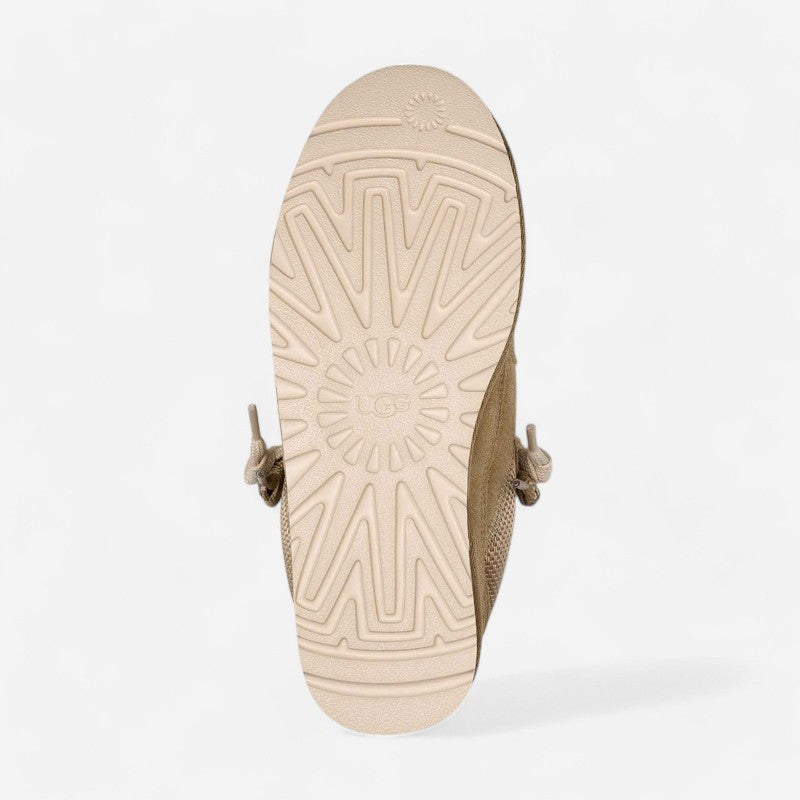 With the ease of a sneaker and the comfort of a slipper, our Lo Lowmel is all about impeccable vibes. ?This newcomer to our Lowmel family features a lower profile that begs for baggy jeans, '90s jams, and seaside hangs. The upper features a textured mix of genuine suede and recycled ballistic canvas mesh, giving the quintessential sneaker style. On the bottom, you'll find our springy sugarcane EVA outsole that offers the signature Feel of UGG® and makes these feel extra light on the foot.